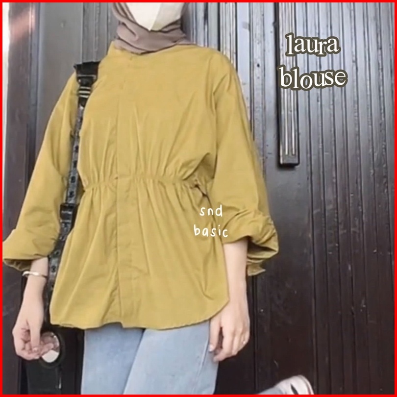 Laura Cotton Top Blouse Atasan Tartan Gingham Blus Kemeja Kotak Kerut Katun Poplin