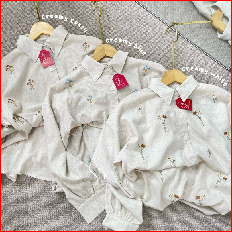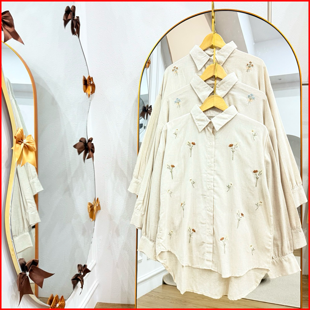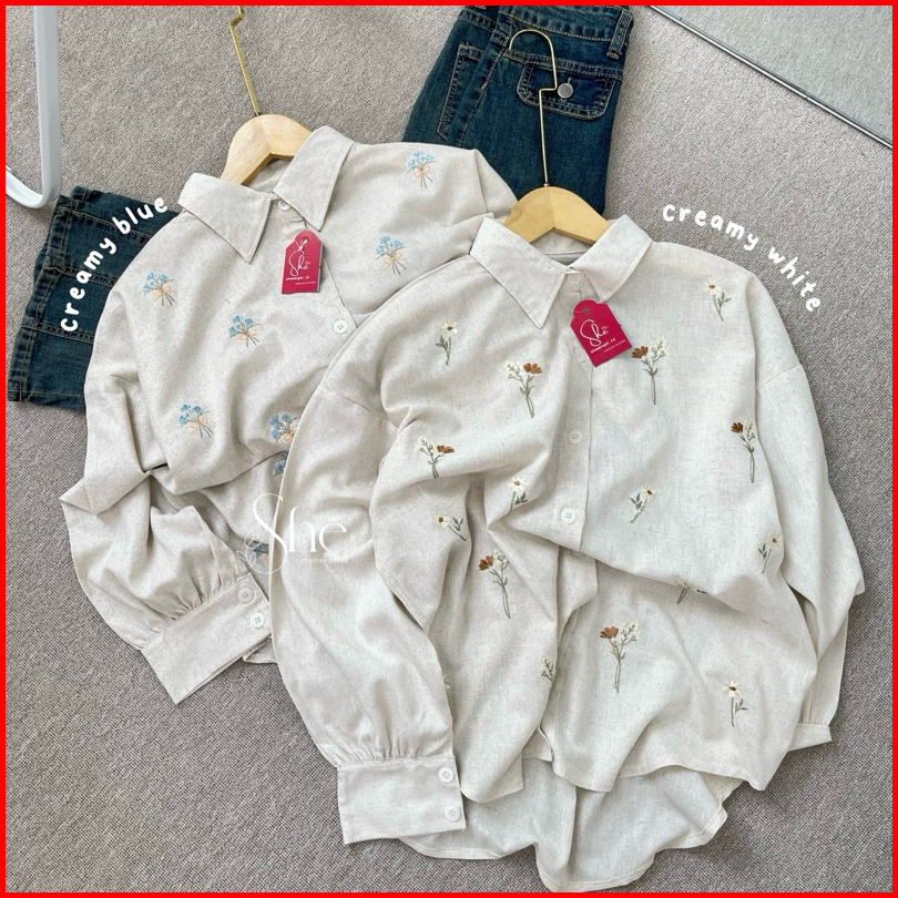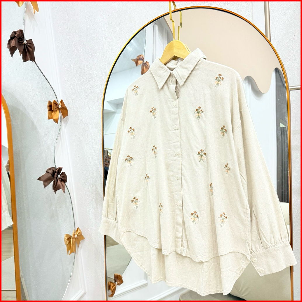 Alie Shirt Embriodery Kemeja Bordir Bunga Wanita Koreanlook Kemeja Bordir Bulukuda By Shemangat Id