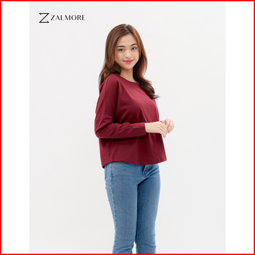 Zalmore Luma Cotton Longsleeve Loose Tee Premium Cotton - Kaos Lengan Panjang Wanita