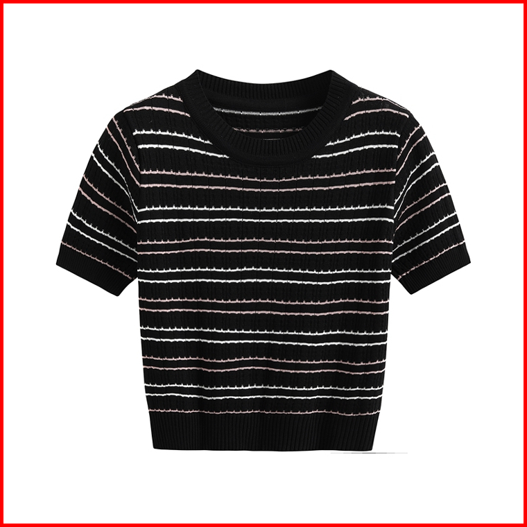 Obral Cuci Gudang The Monseur Gallery Kaos Rajut Lengan Pendek Wanita Striped T-shirt Korean Style