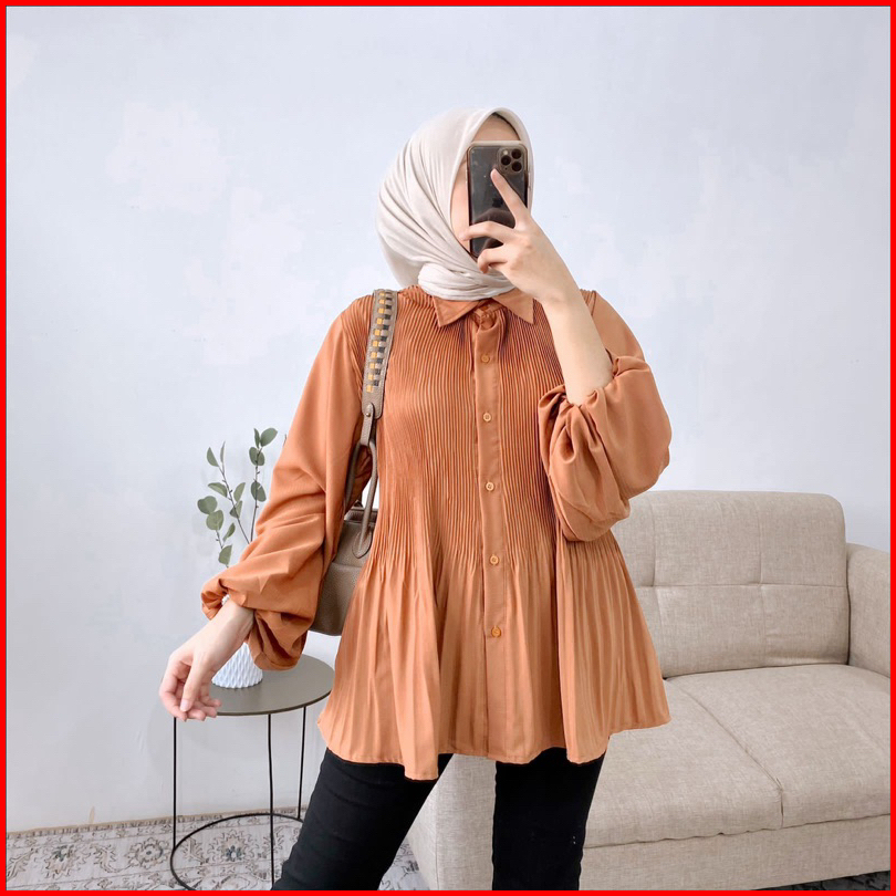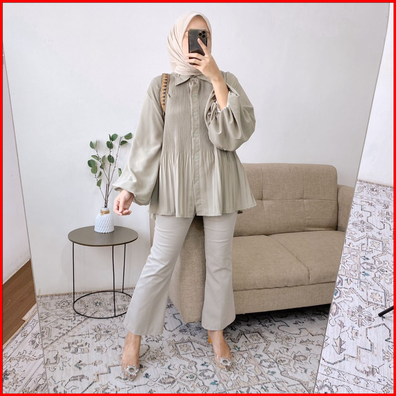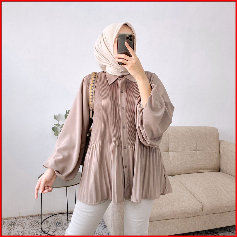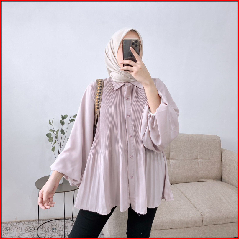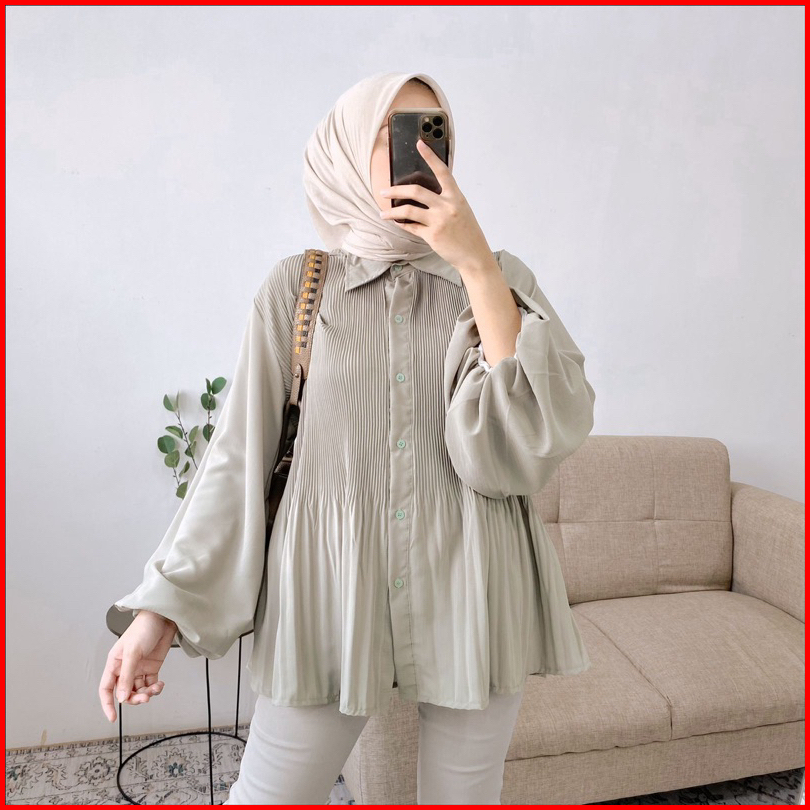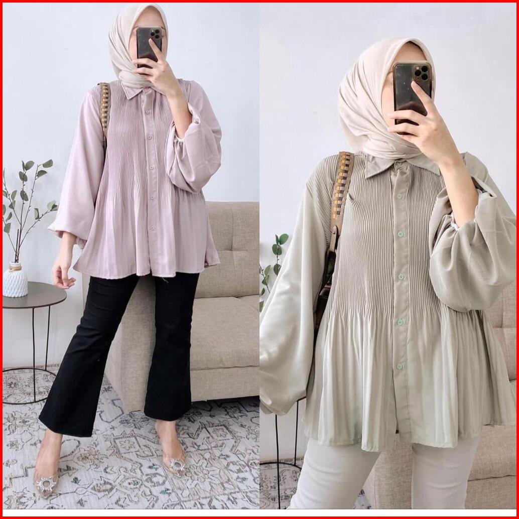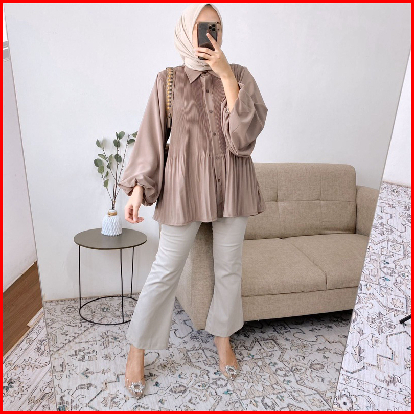 Azura Top Blouse Crincle Kemeja Wanita Plisket Pleated