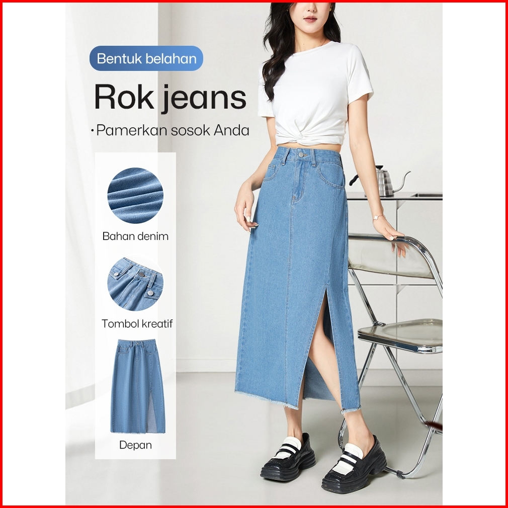 Rok Denim Korea Baru Rok Rok Panjang Korea Rok Terpisah