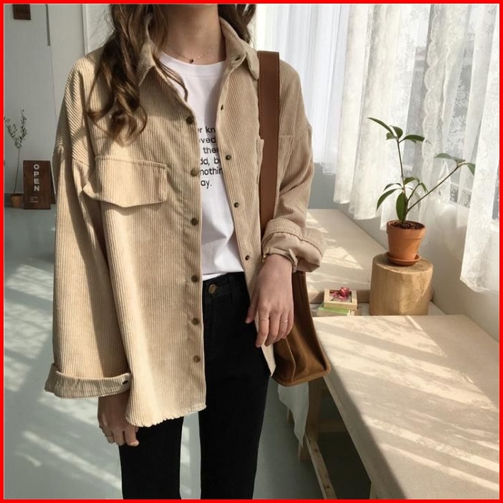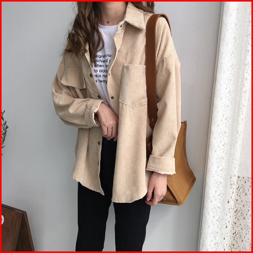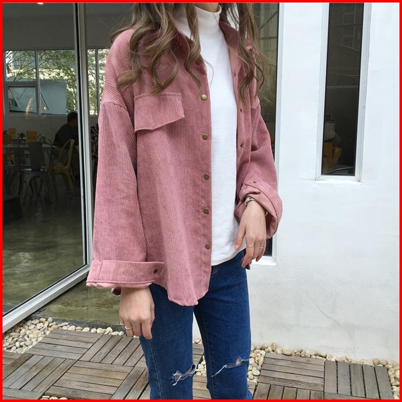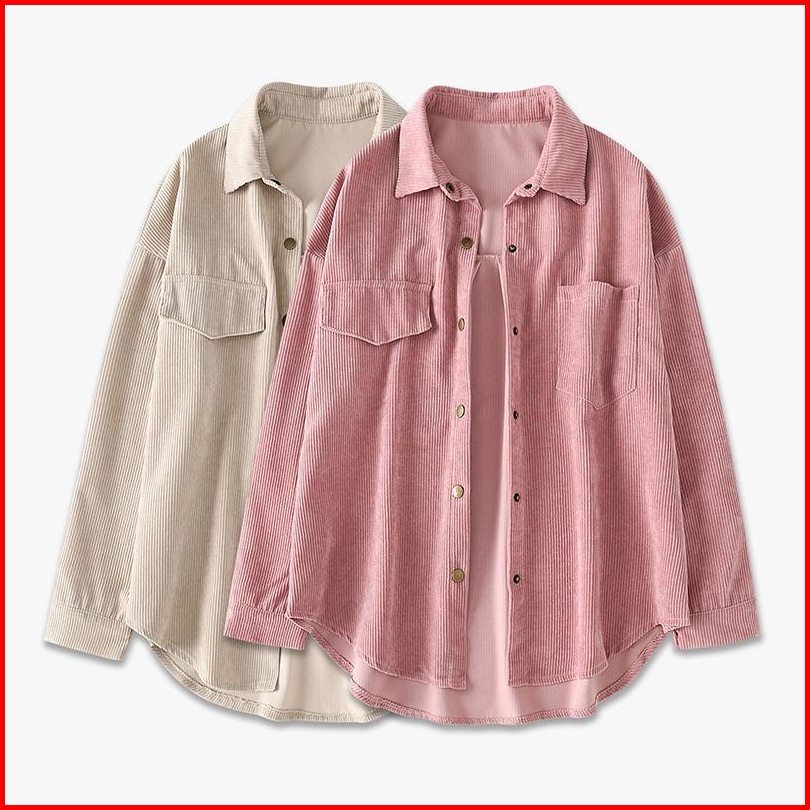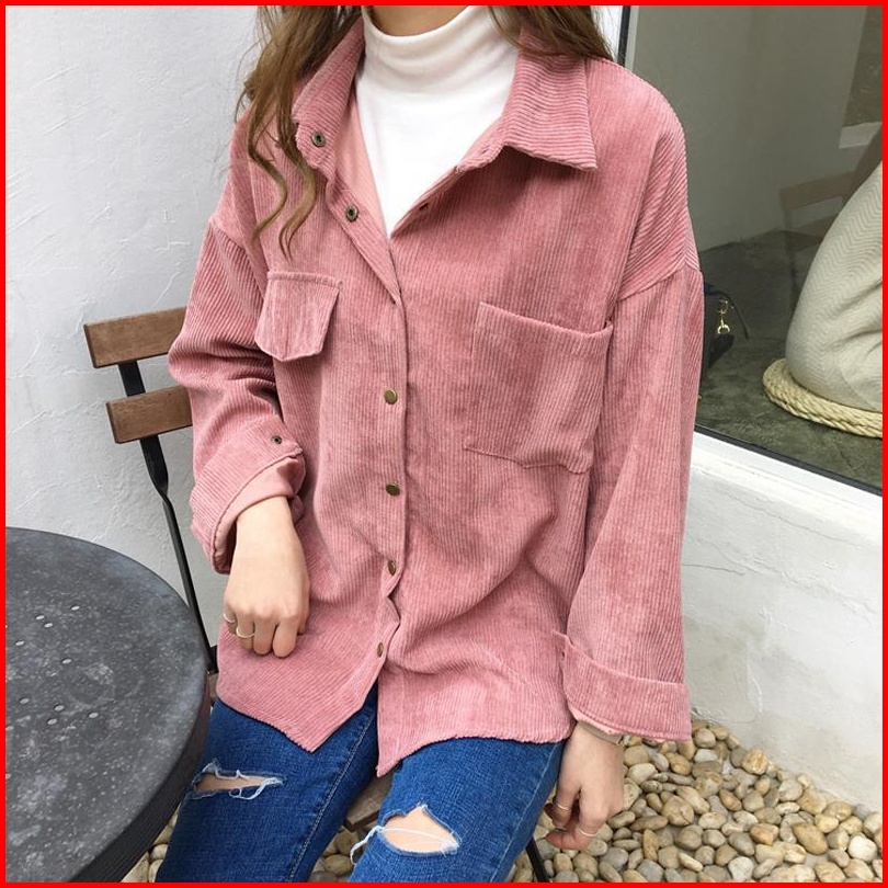 Yuruma Atasan Korea Kemeja Blouse Korduroi Desain Retro Wanita Shirt M-4xl