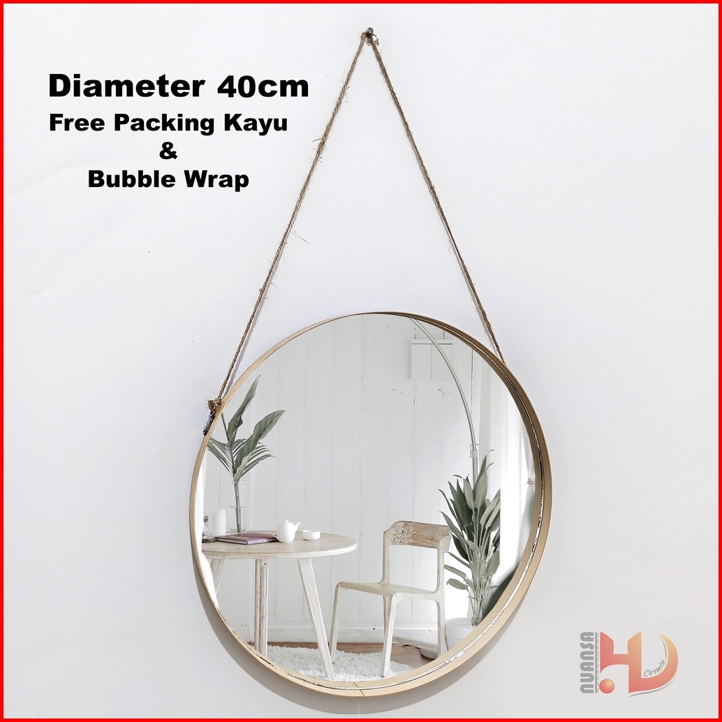 Cermin Bulat Gantung Diameter 40cm - Kaca Aesthetic Bulat - Cermin Dinding - Cermin Rias - Kaca Minimalis