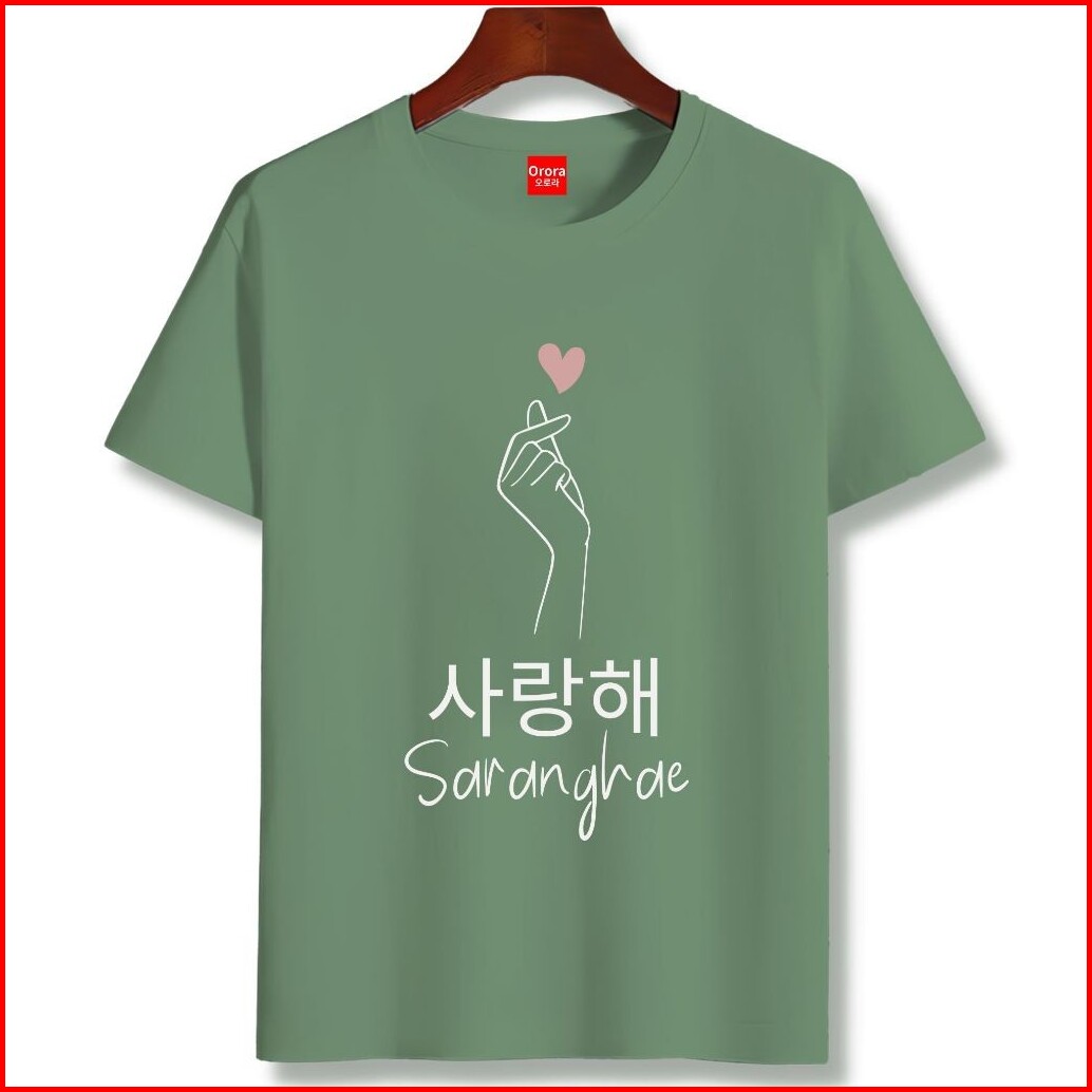 Orora Kaos Wanita Korean Style - Baju Kaos Wanita Saranghae - Kaos Cewek Love Finger Heart Orkl 11