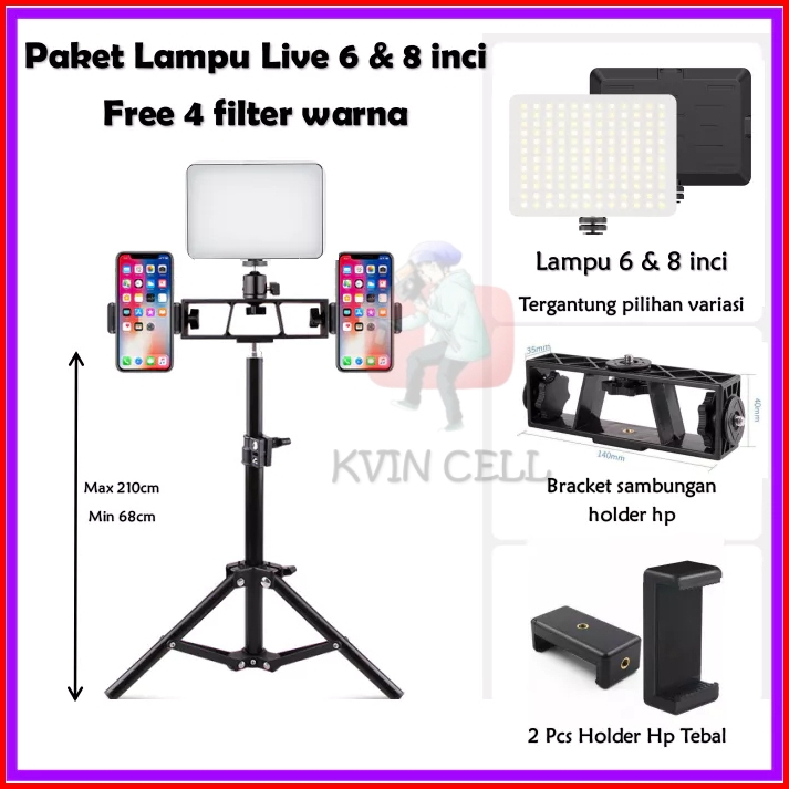 Paket Lampu Streaming 6 Inci 8 Inci Tripod 2.1 Meter Foto Produk Studio Fotografi Palaroid Ringlight Led Light Free 2 Ho