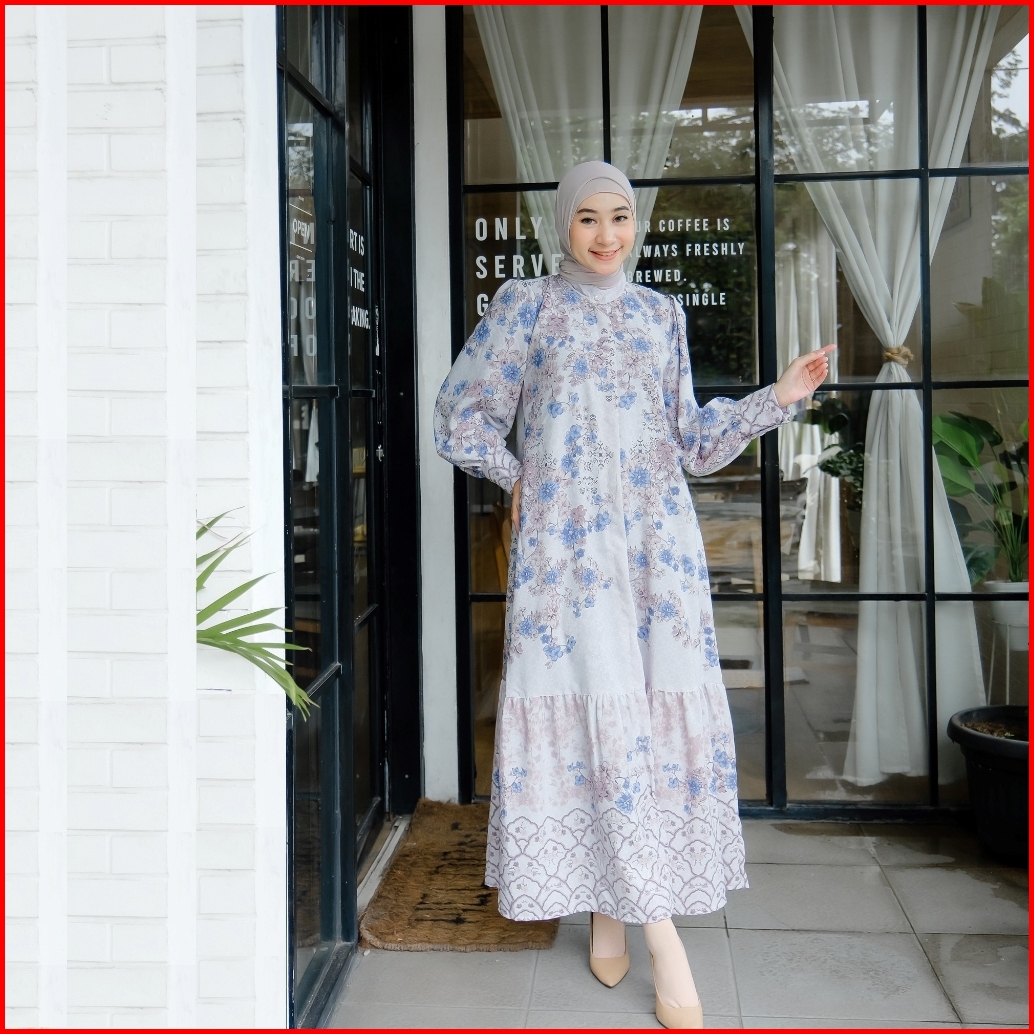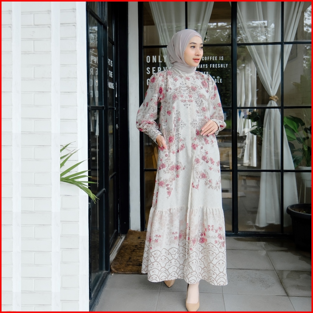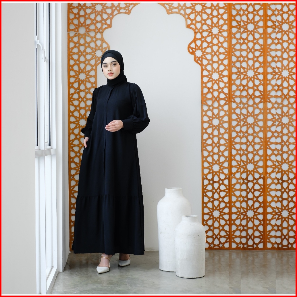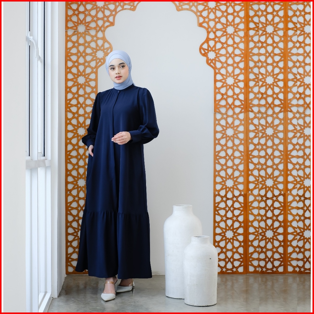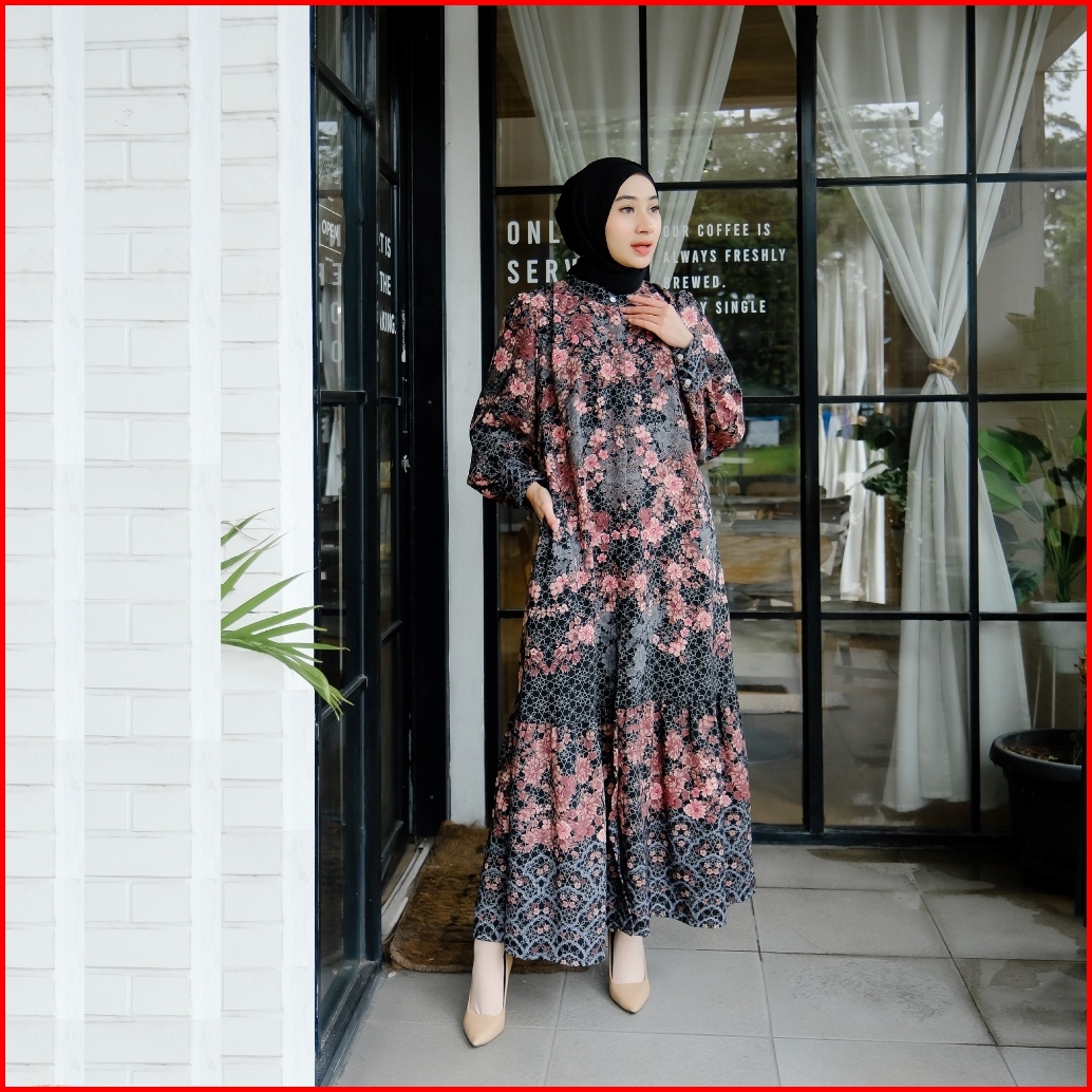Nakamolo - Lateefa Dress Motif Etnik Dan Basic Busui Friendly Dengan Zipper Di Dada