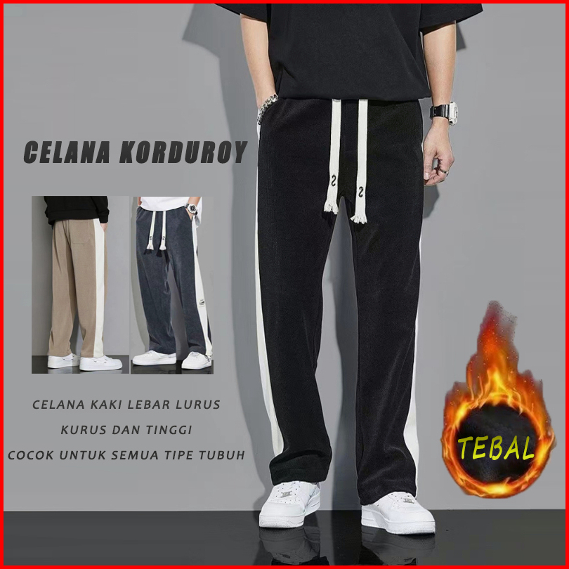 Celana Corduroy Pria Jumbo M-5xl Corduroy Pants Celana Oversize Pria Wide Leg Baggy Pants Korean Style Celana Korduroy P