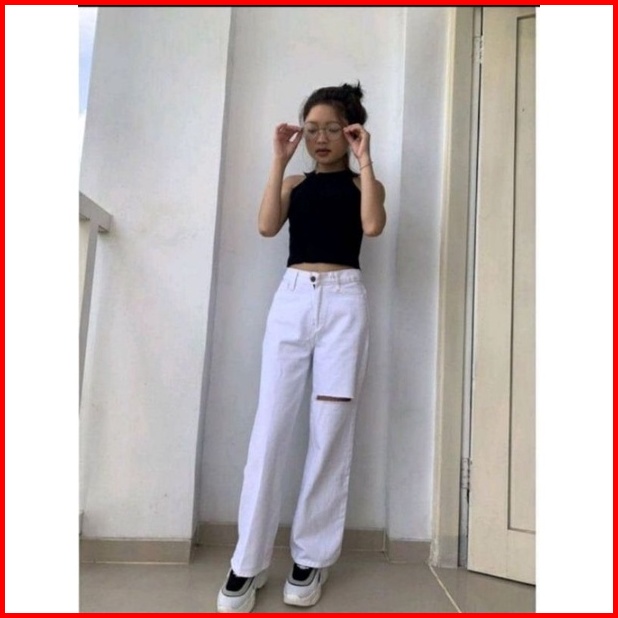Celana Kulot Jeans Wanita Sobek Ripped Jins Denim Highwaist Murah Cewek Cullote Cutbray Korean Style