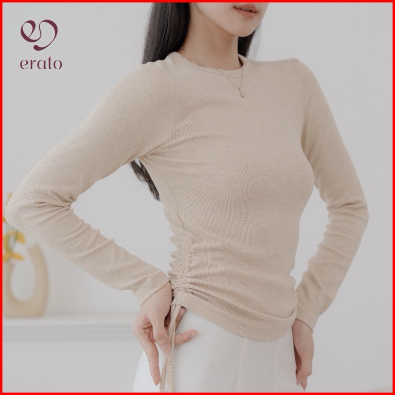 Erato - Laylia Long Sleeve Top Atasan Rajut Atasan Lengan Panjang Wanita Serut Hijab Friendly Stretchy Adem Nyaman Casua