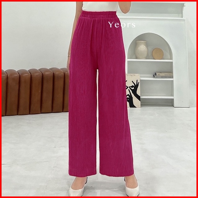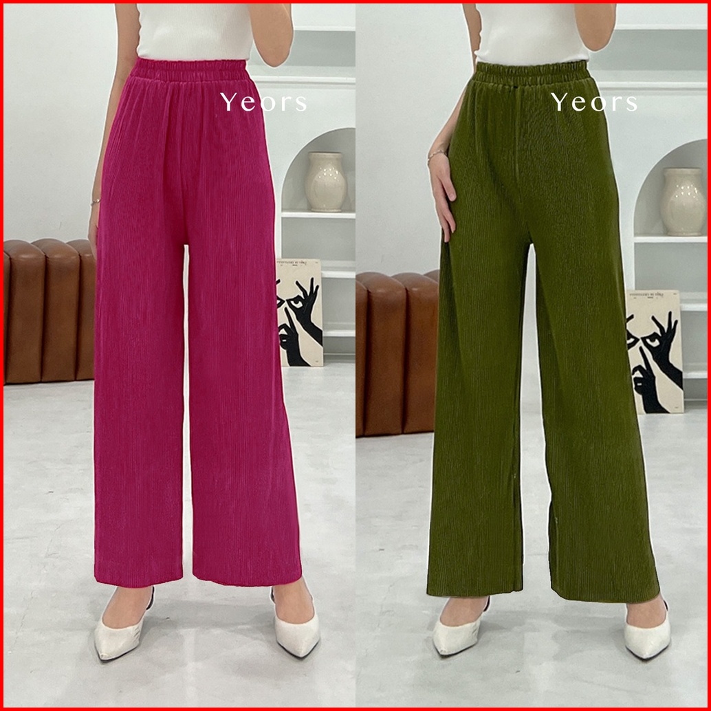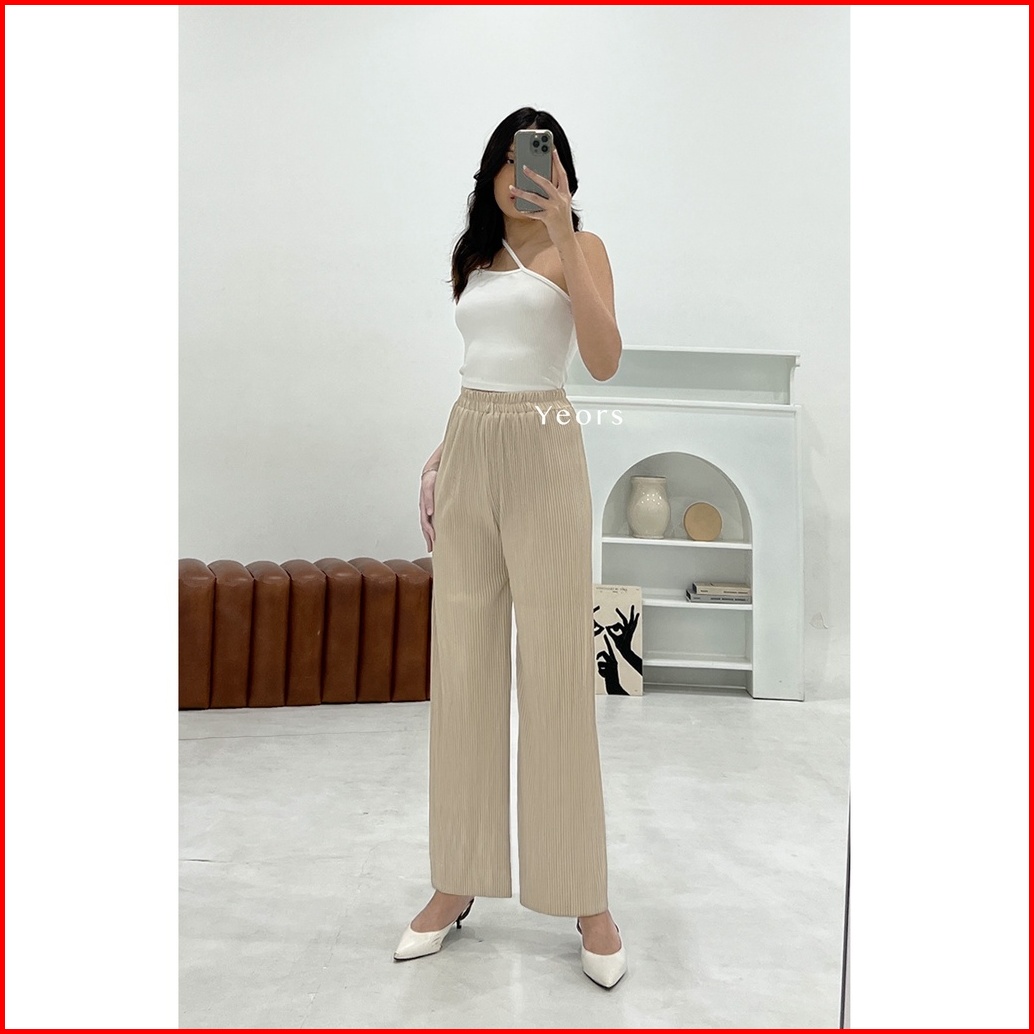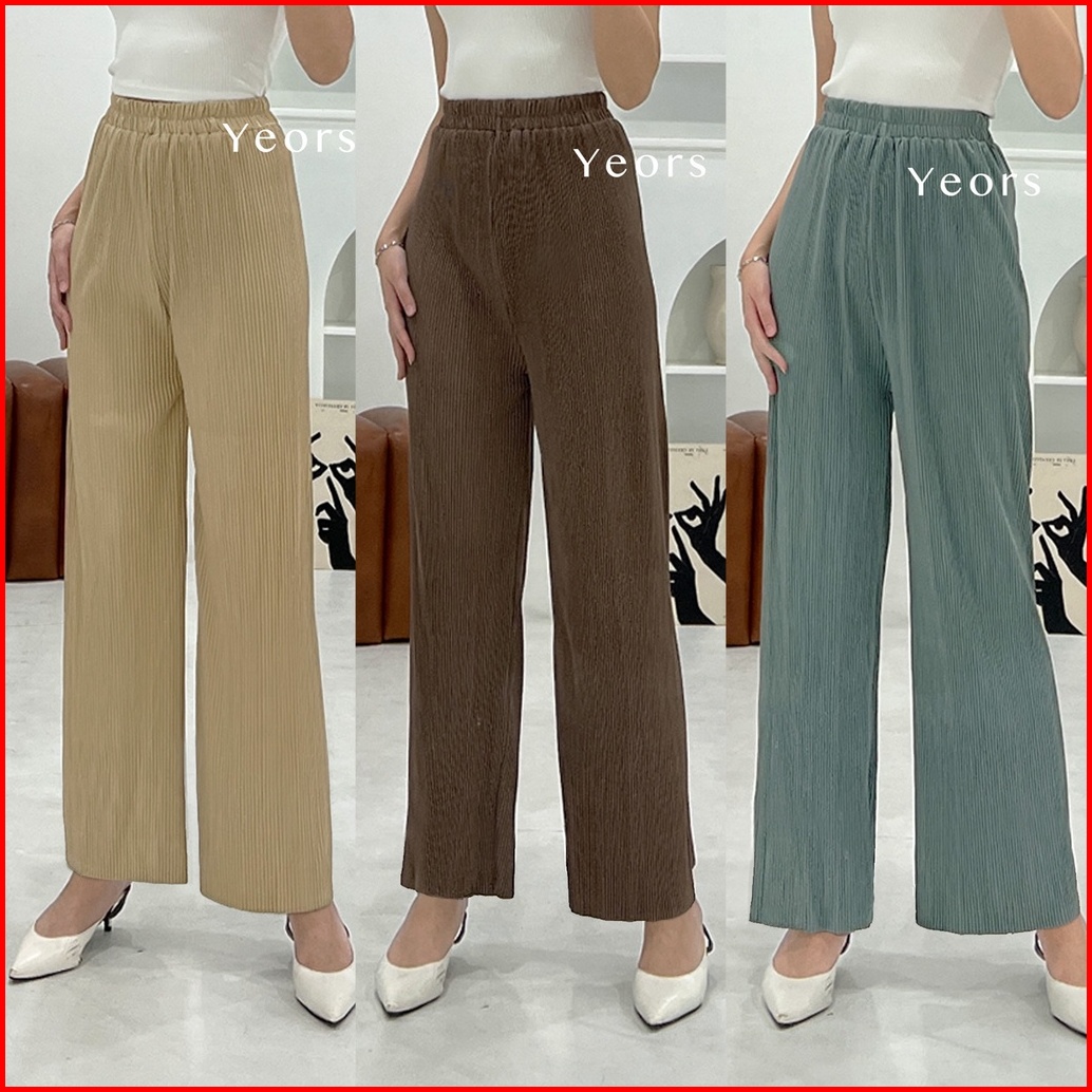 Yeors - Celana Murah Berkualitas Kulot Plisket Lidi Premium - Long Cullote Adelle Pants - Korean Loose Pants Trousers