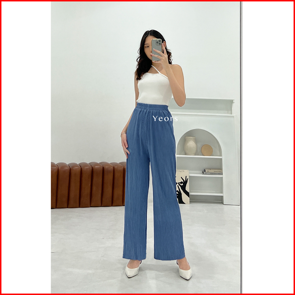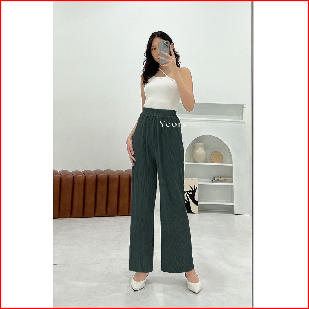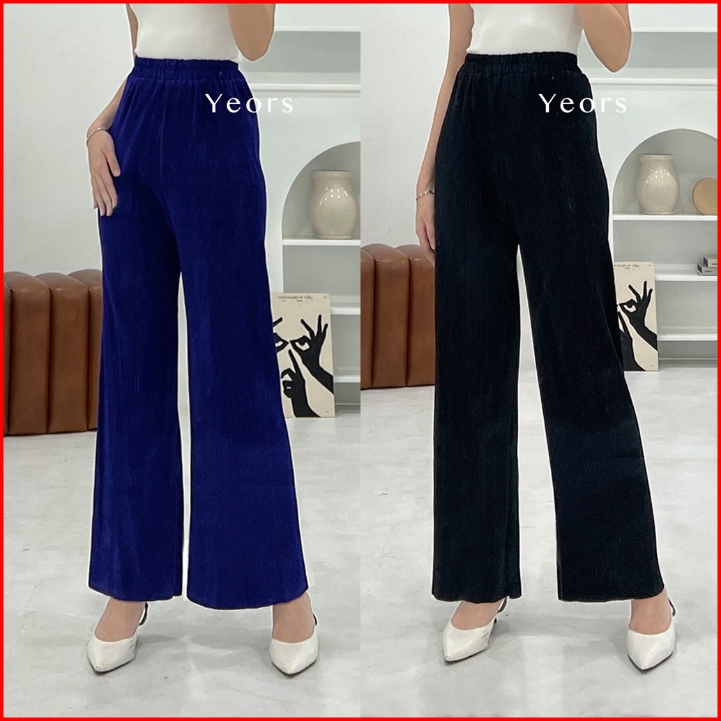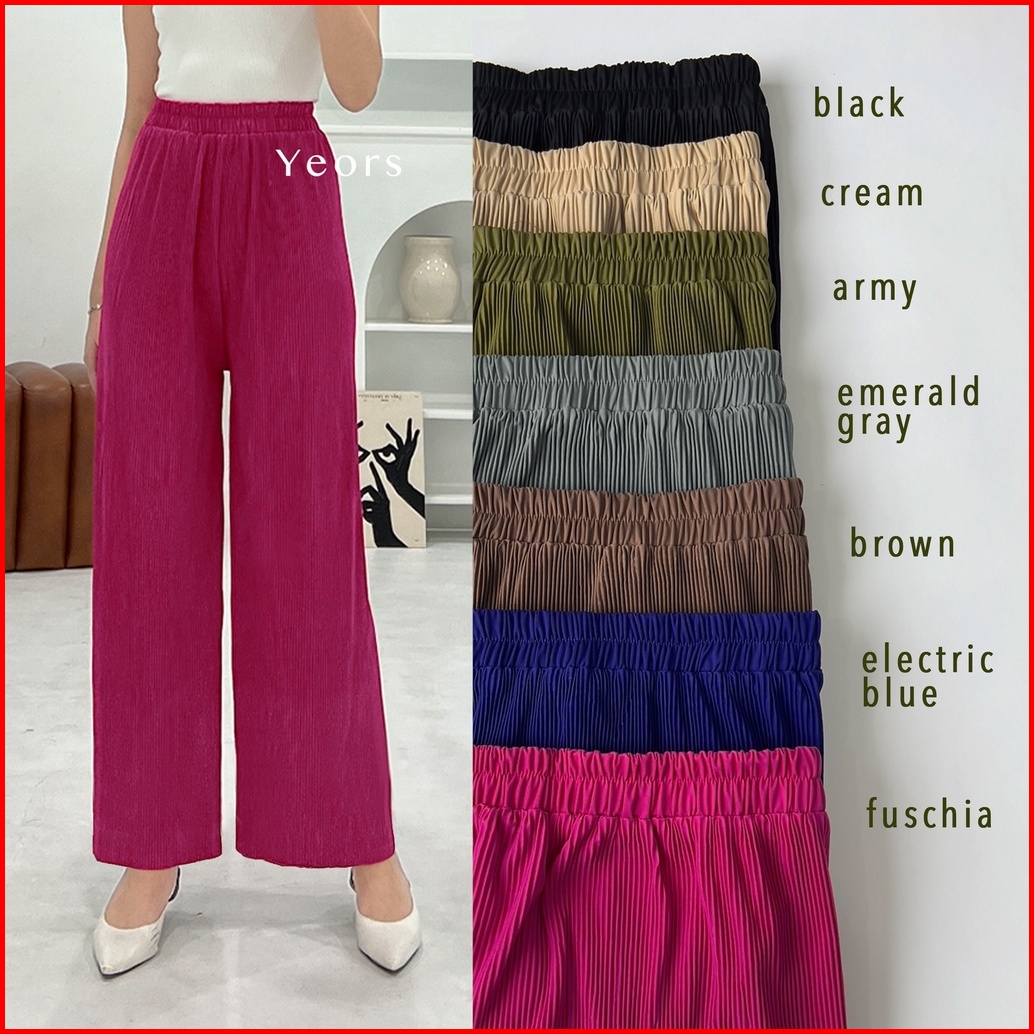 Yeors - Celana Murah Berkualitas Kulot Plisket Lidi Premium - Long Cullote Adelle Pants - Korean Loose Pants Trousers