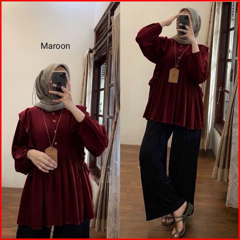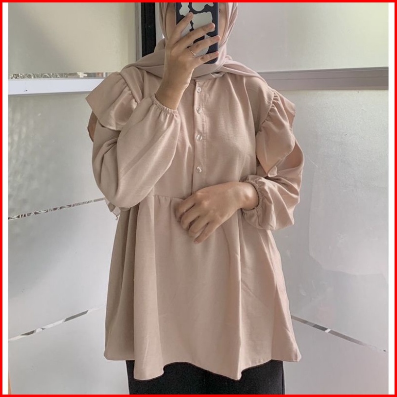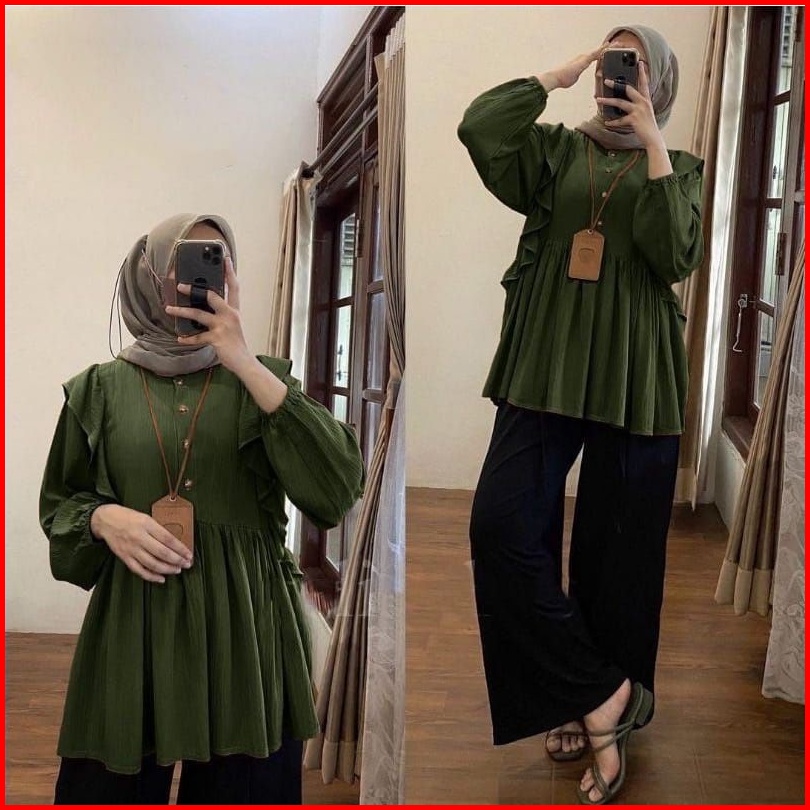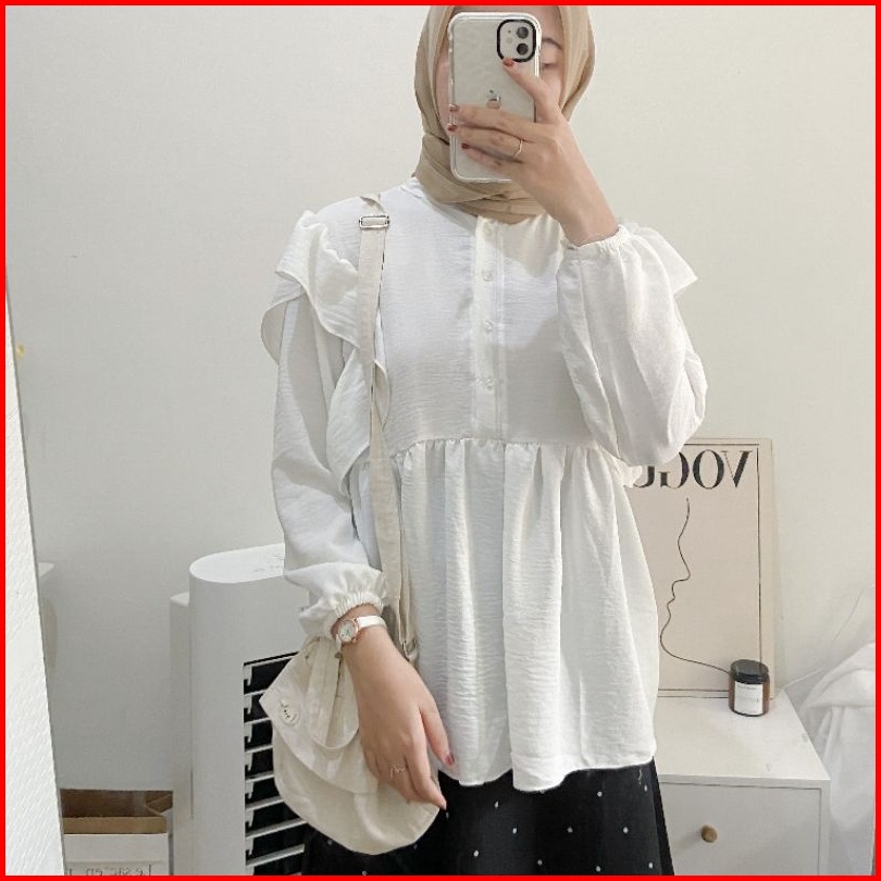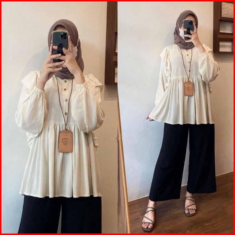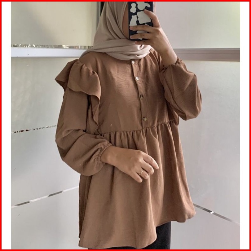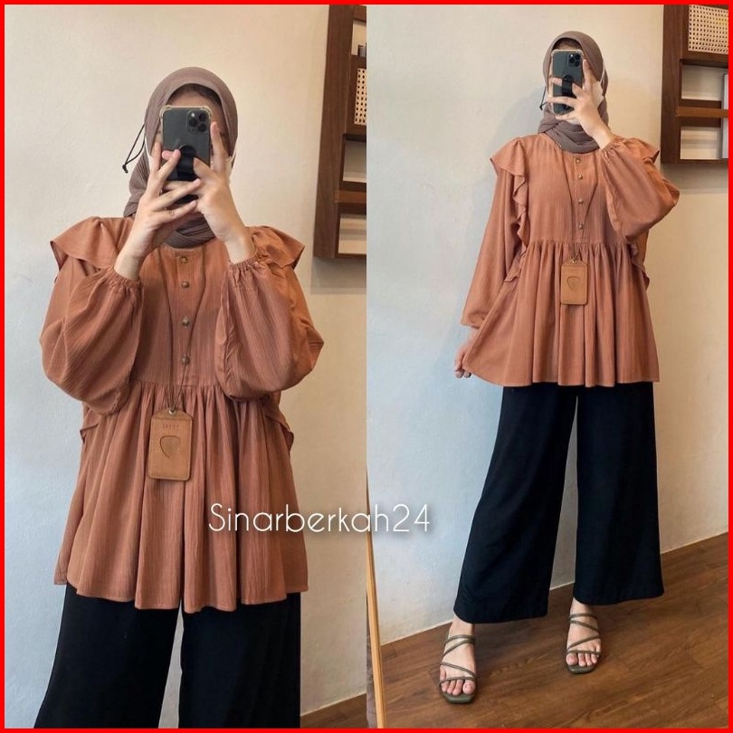 Karin Top Peplum Blouse Kemeja Baju Wanita Blouse Crinkle Airflow - Atasan Wanita