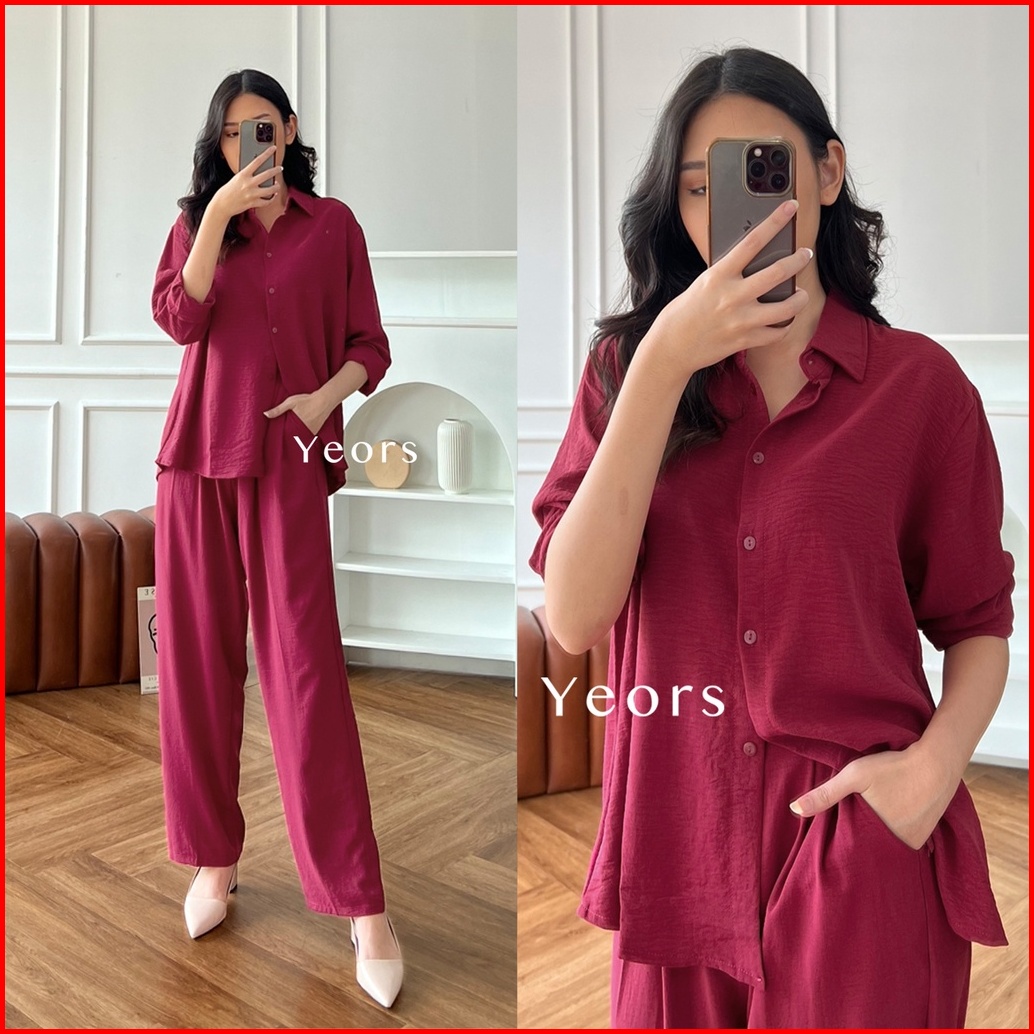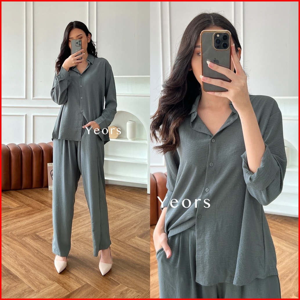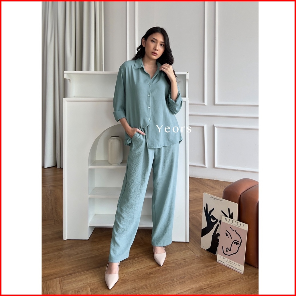 Yeors - Zoya Premium Crinkle Set - Baju Atasan Dan Celana Wanita Murah Berkualitas - Korean Loose Pants Trousers Wanita
