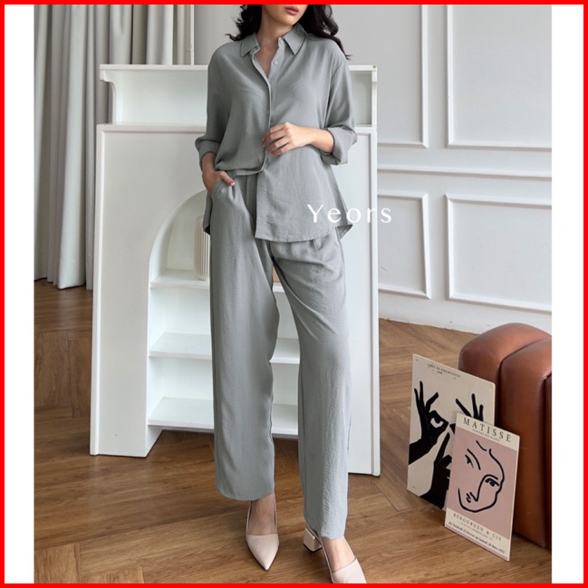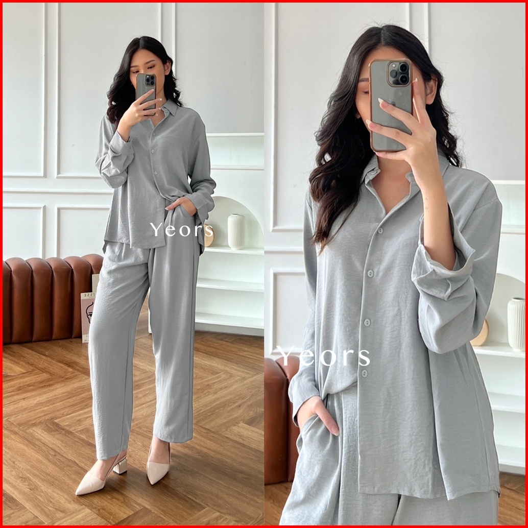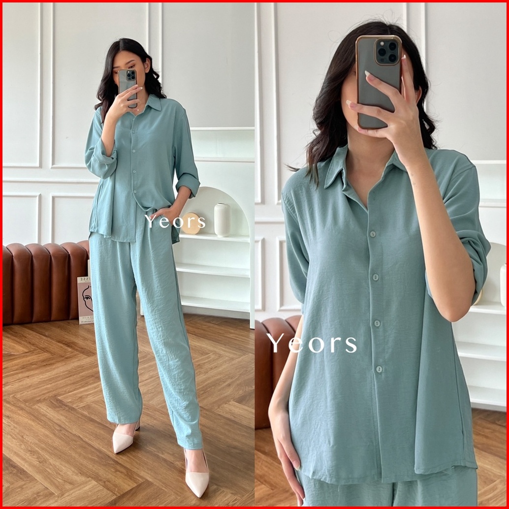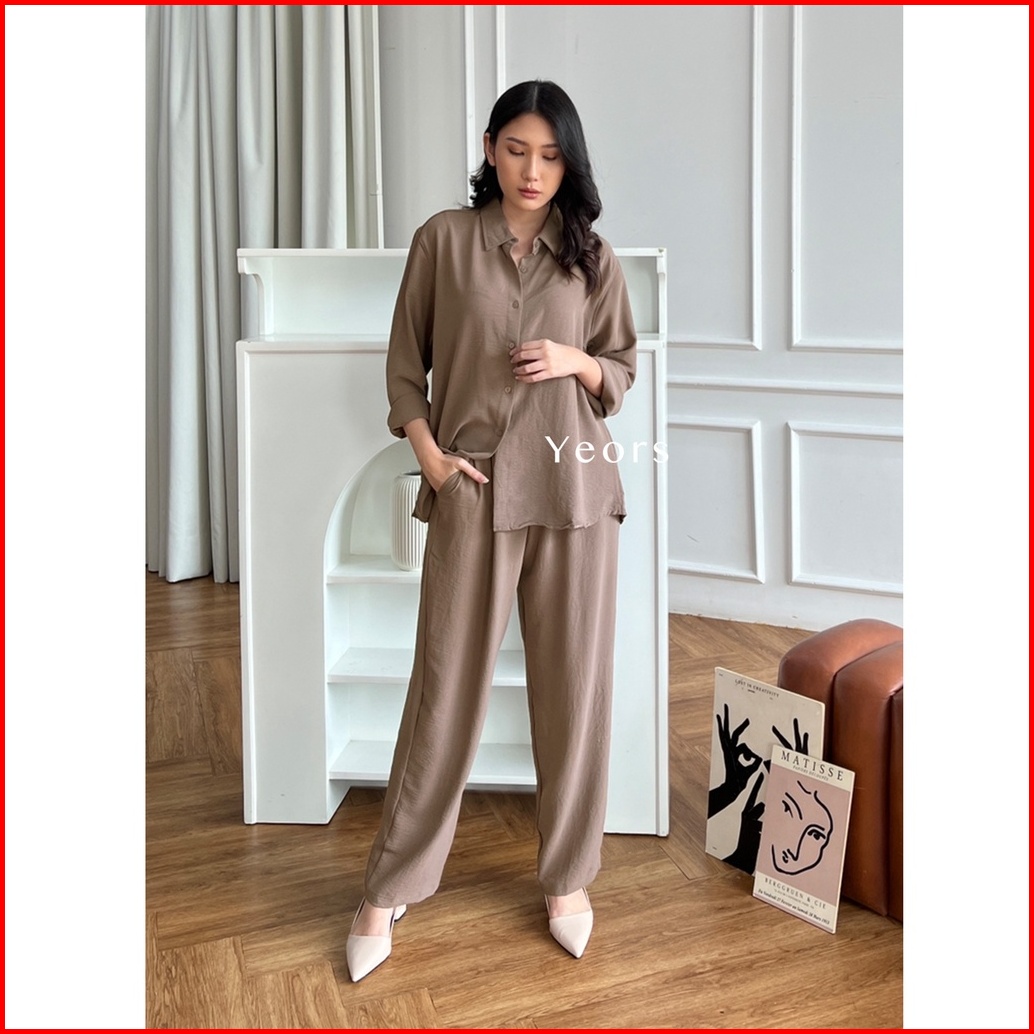 Yeors - Zoya Premium Crinkle Set - Baju Atasan Dan Celana Wanita Murah Berkualitas - Korean Loose Pants Trousers Wanita