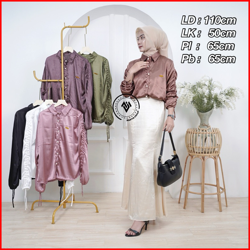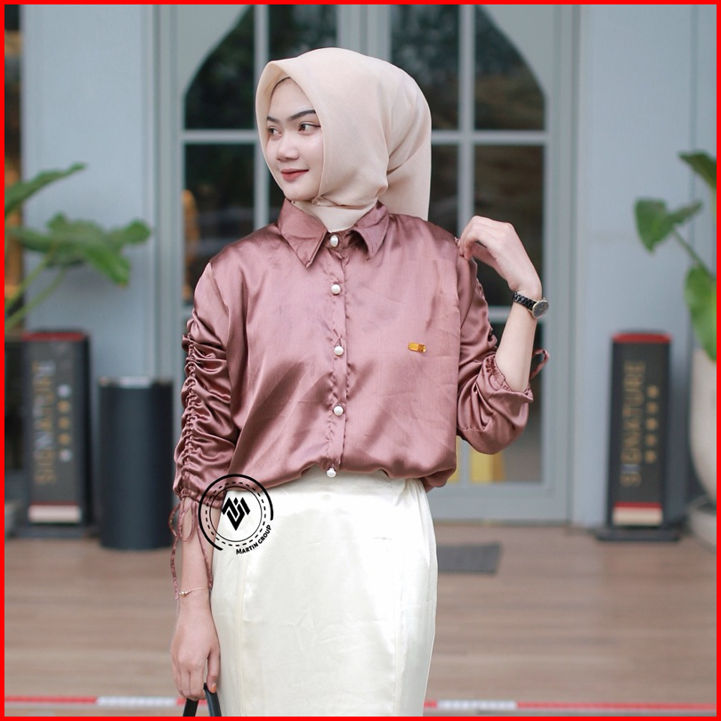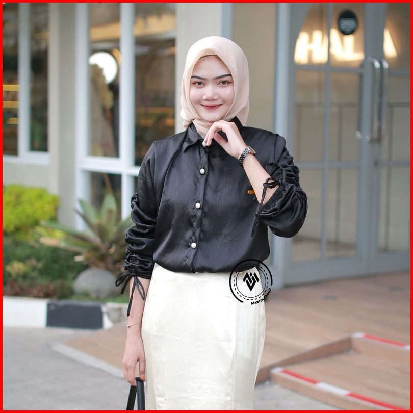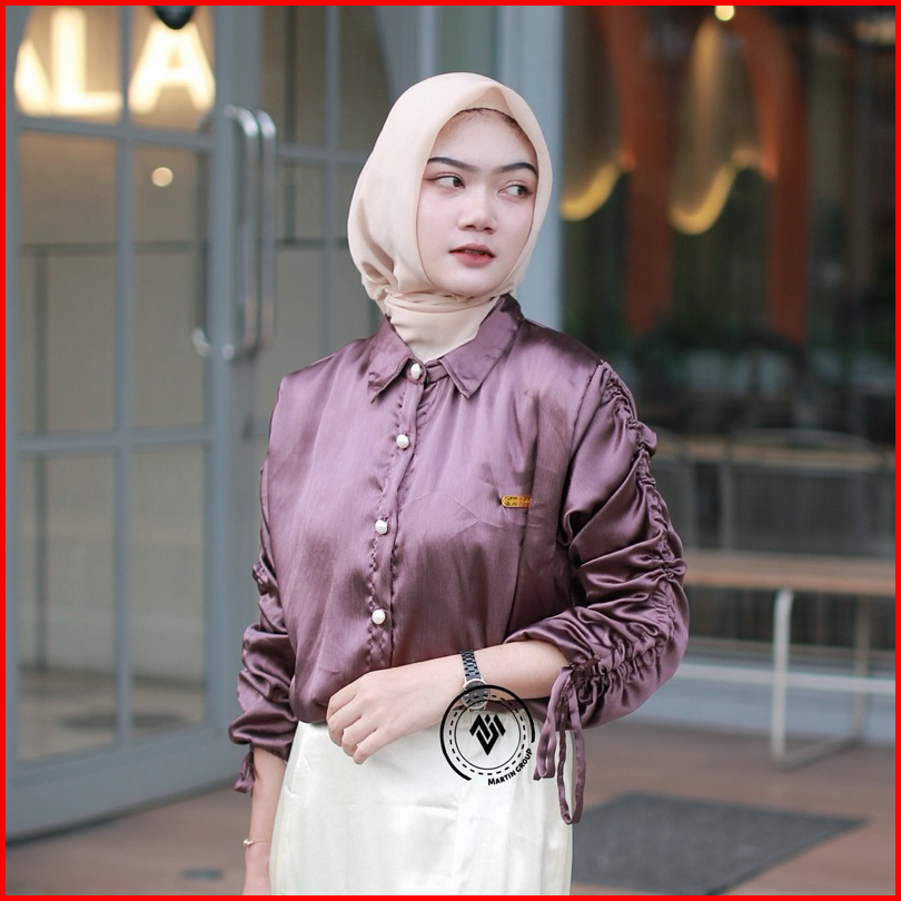 Bella Blouse Atasan Wanita Korean Style Atasan Cradenza Silk Polos Wanita Baju Panjang