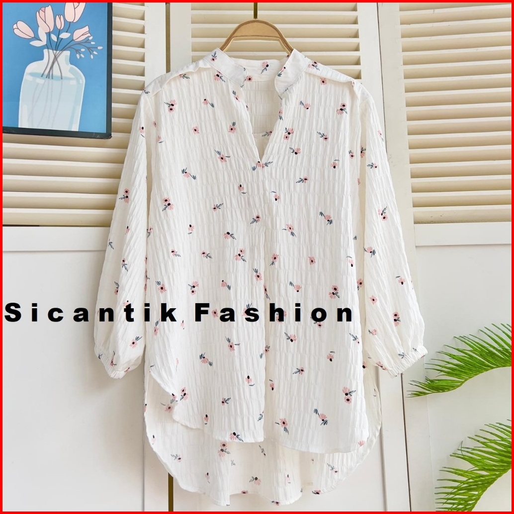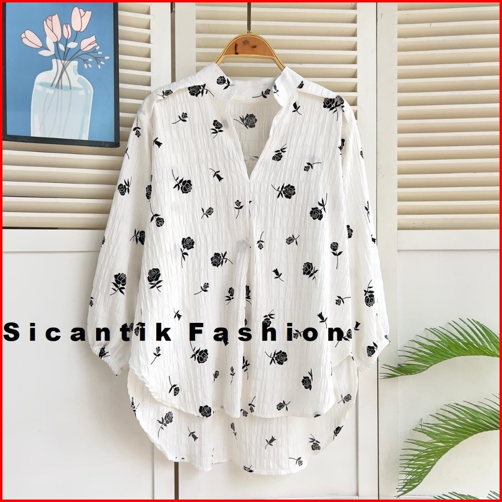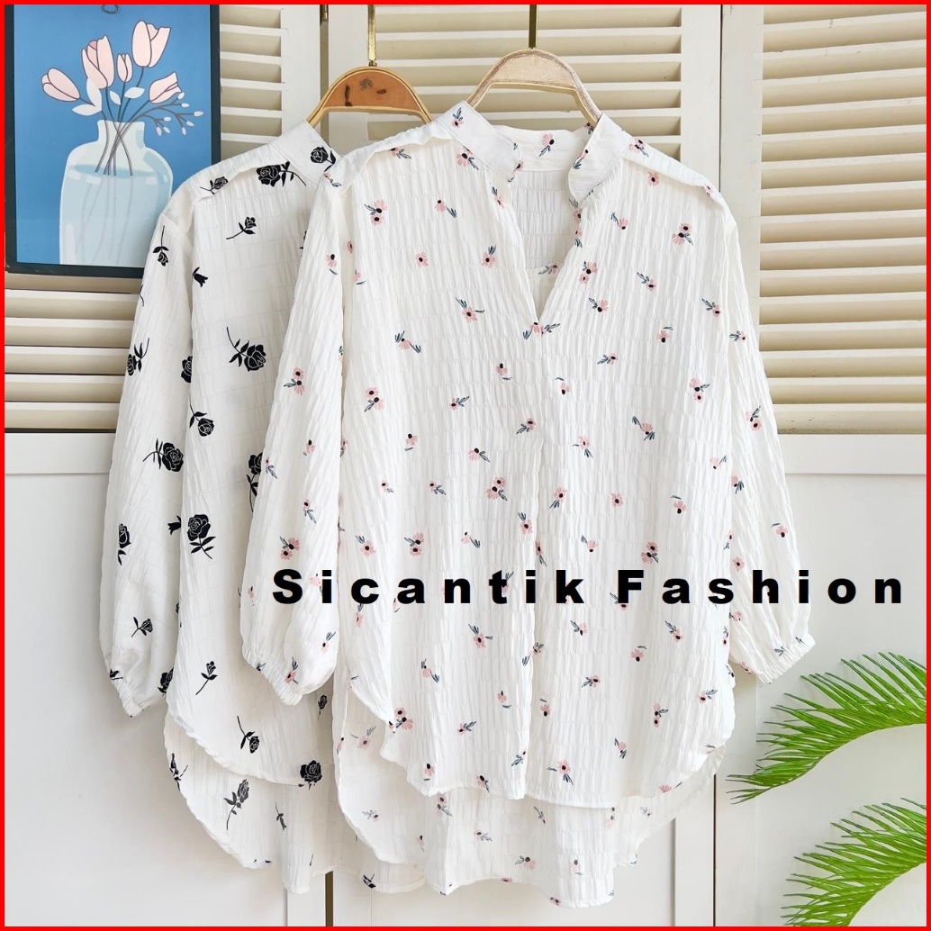 Blouse Wanita Cotton Crinkle Shirt Motif Kemeja Casual