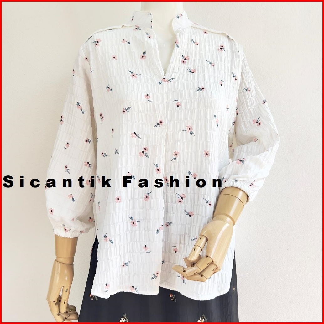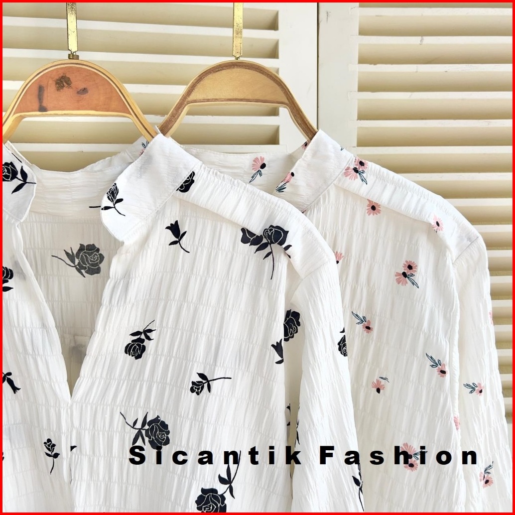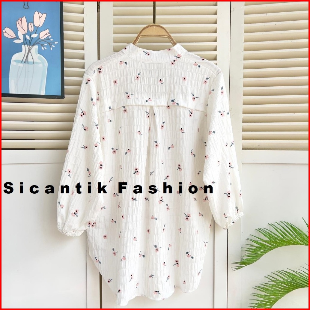 Blouse Wanita Cotton Crinkle Shirt Motif Kemeja Casual