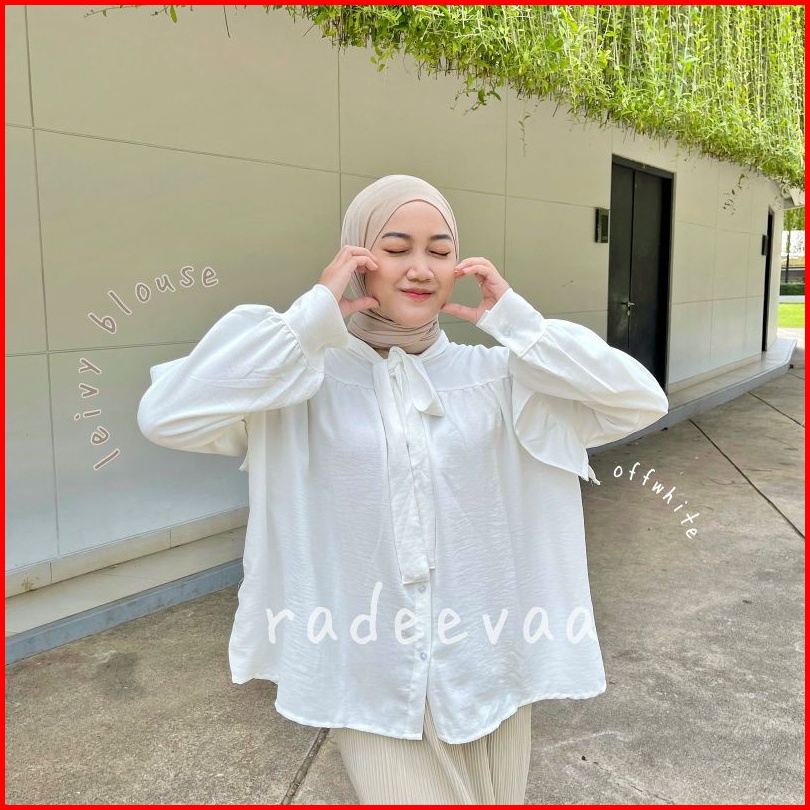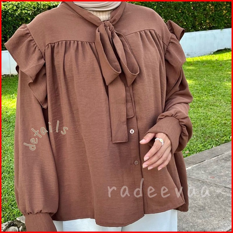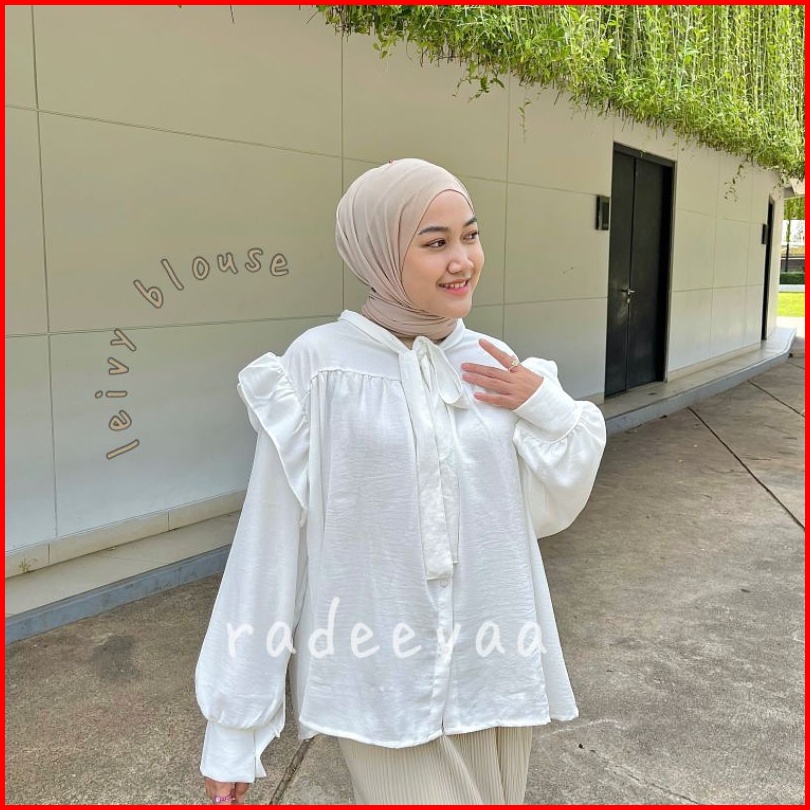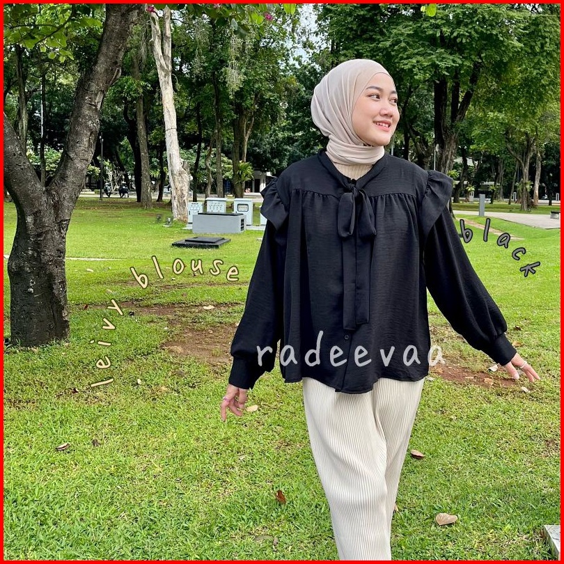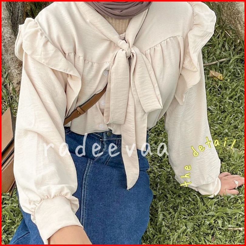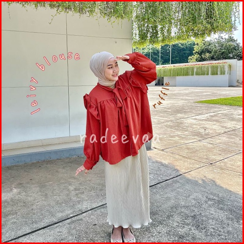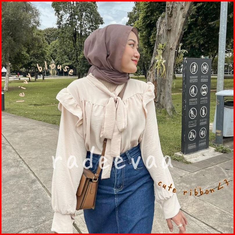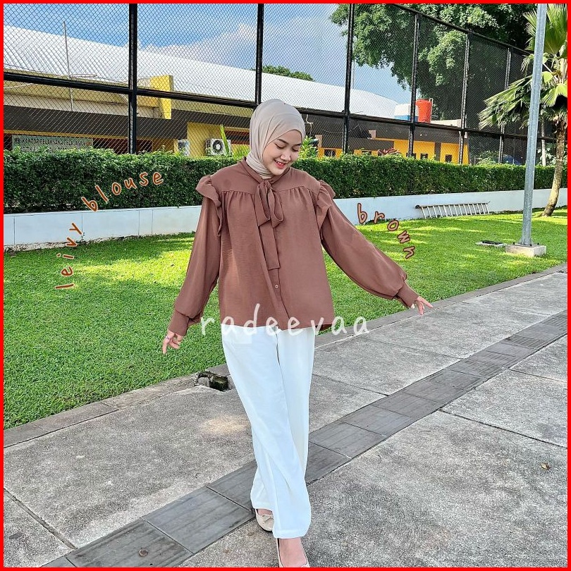 Leivy Korean Blouse Ribbon Airflow Crinkle Atasan Wanita Ruffle Pita Aesthetic
