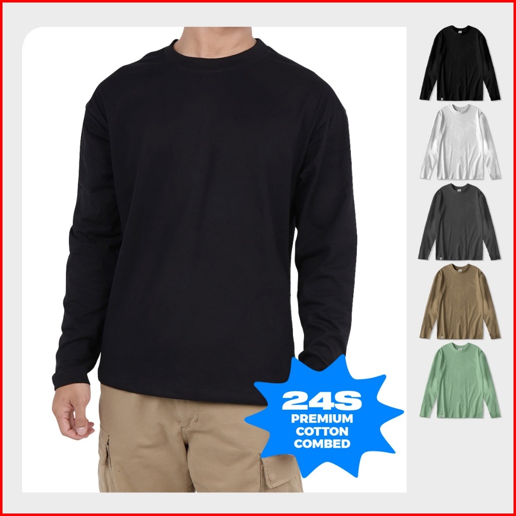 Hungry Co. T-shirt Longsleeve Kaos Polos Kaos Pria Kaos Lengan Panjang