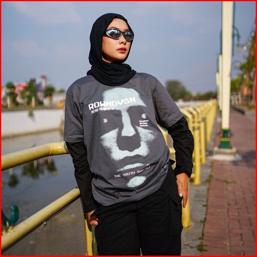 Rown Division Double Sleeve Shirt - Rowndvsn Kaos Double Layer Harrison Grey