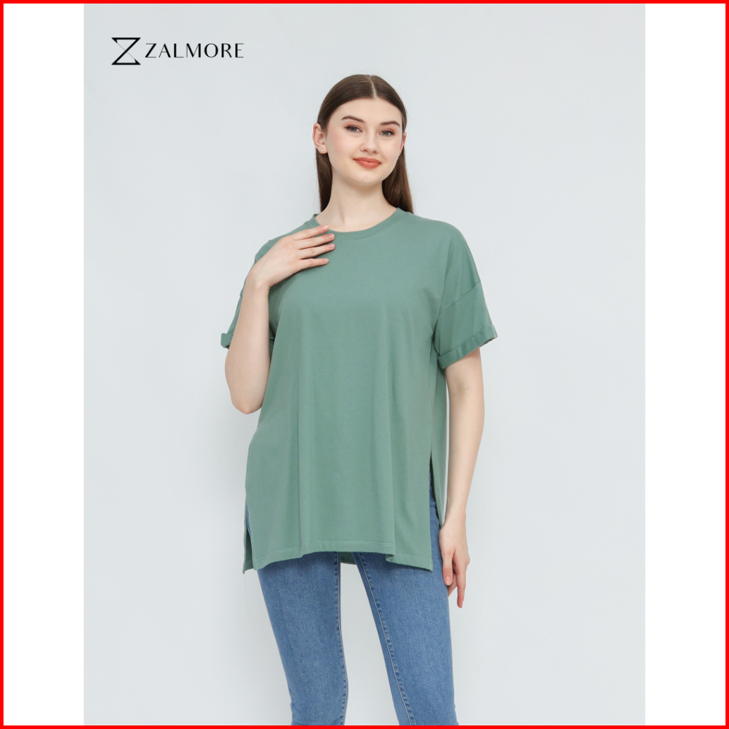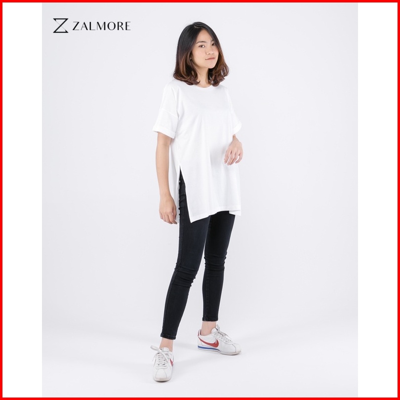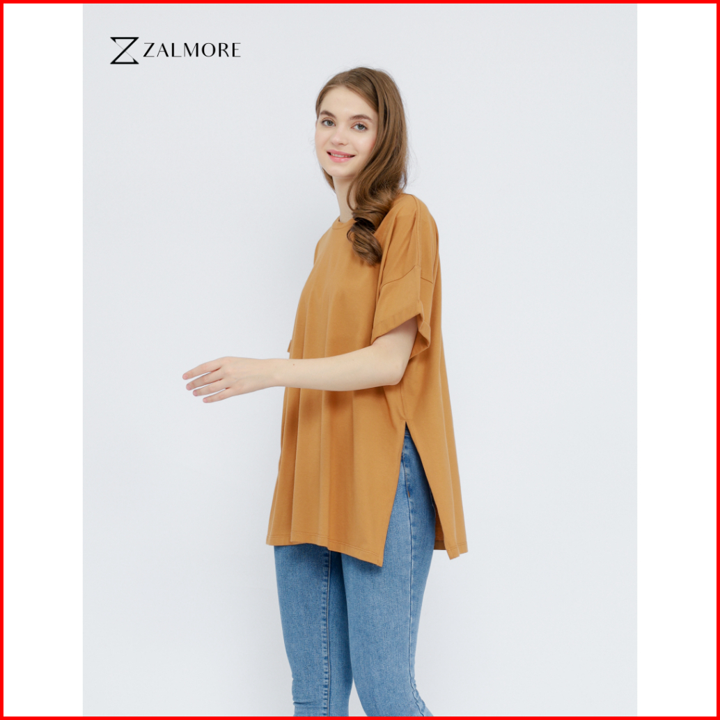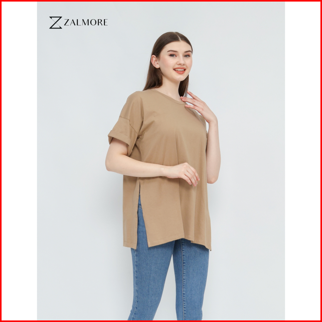 Zalmore Luma Cotton Oversize T-shirt With Slit Premium Cotton - Kaos Oversize Wanita
