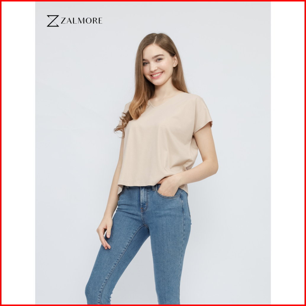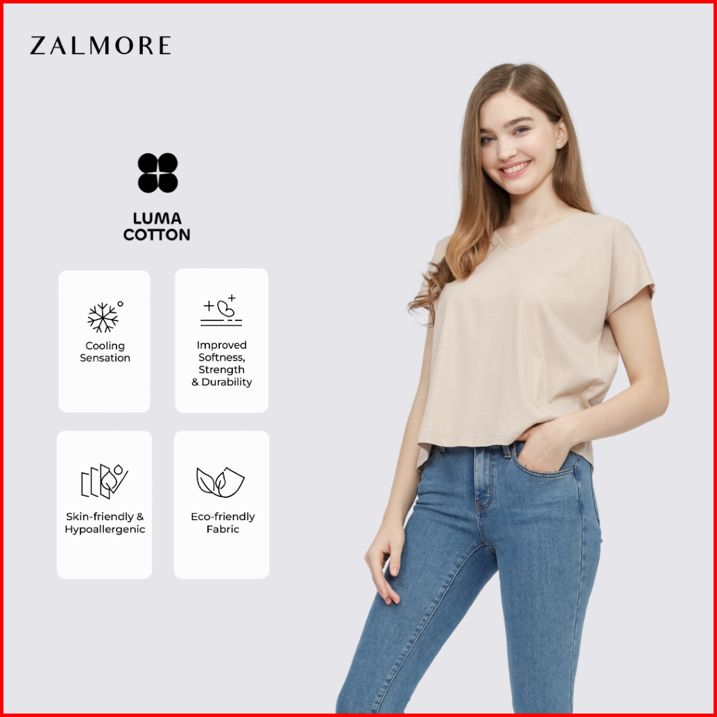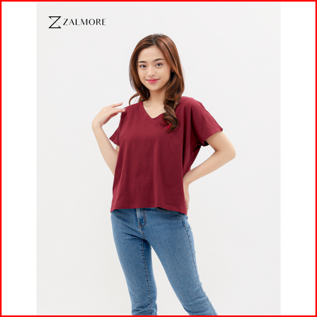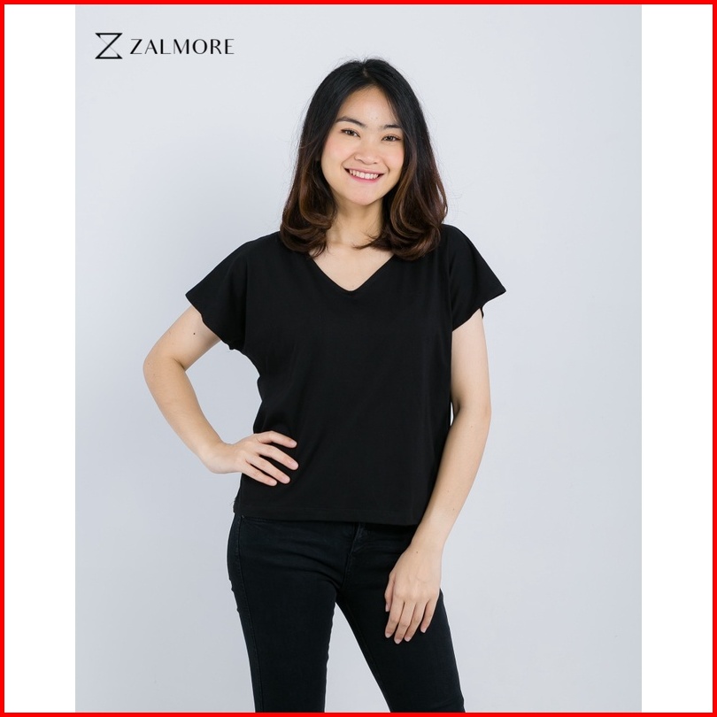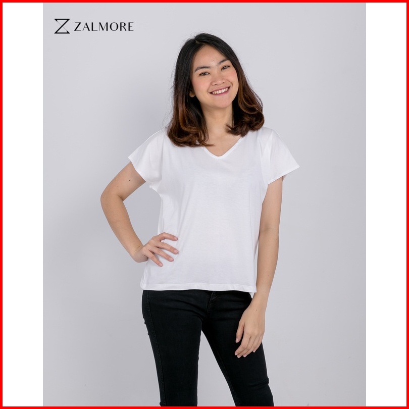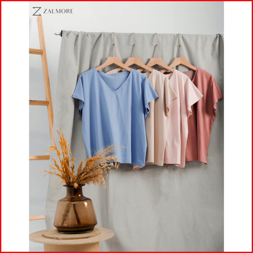 Zalmore Luma Cotton Women Vneck Loose T-shirt Premium Cotton - Kaos Wanita