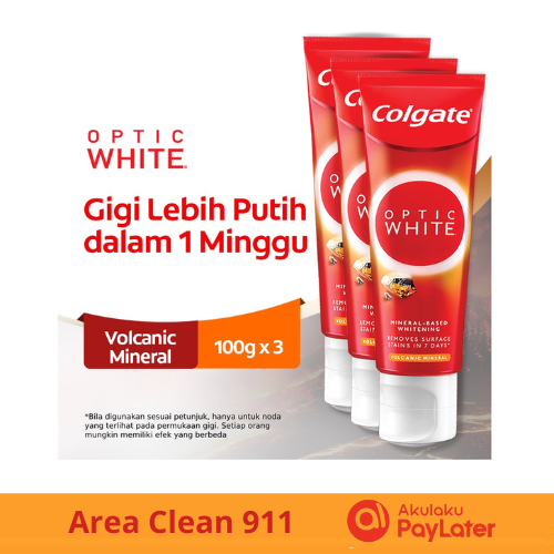 (3pcs) Pasta Gigi Colgate Optic White Whitening Toothpaste Volcanic Mineral 100g