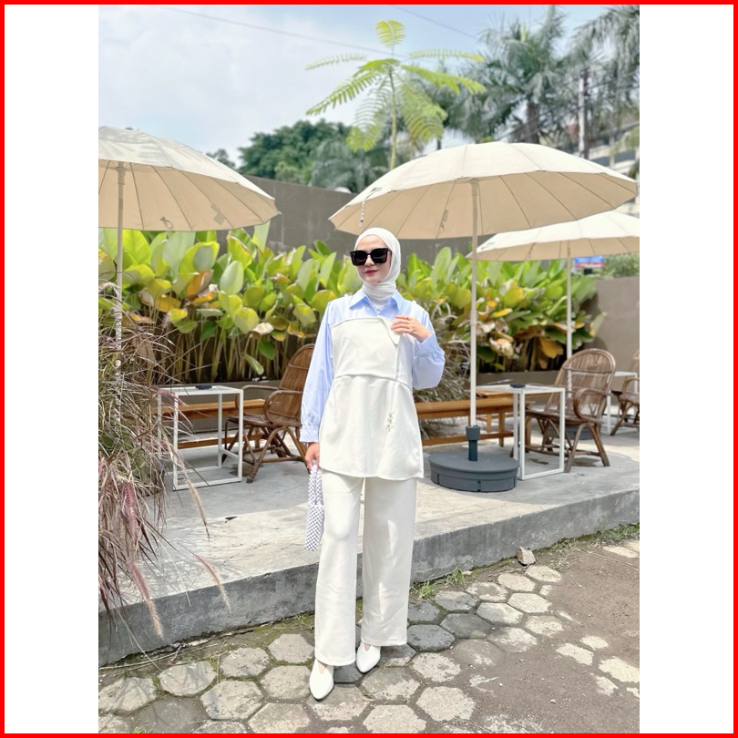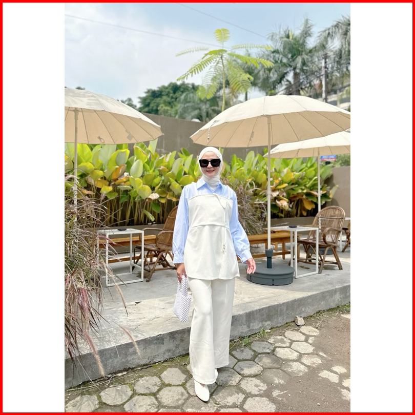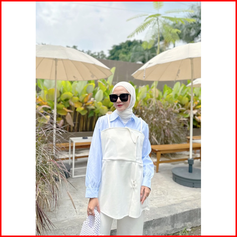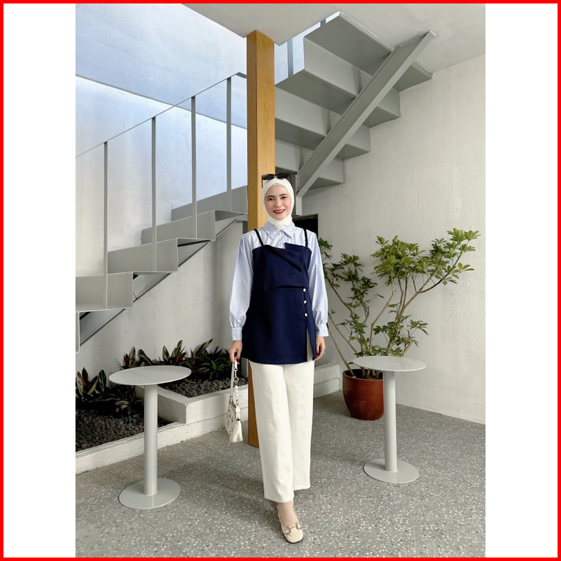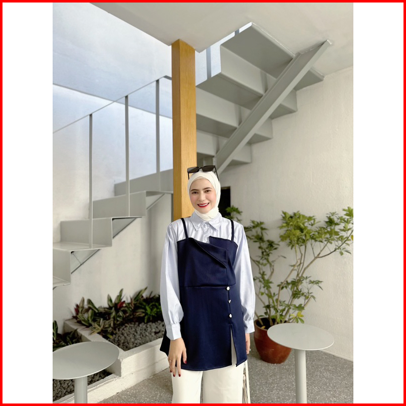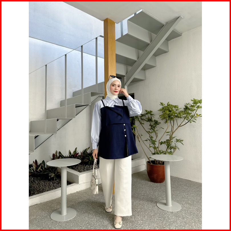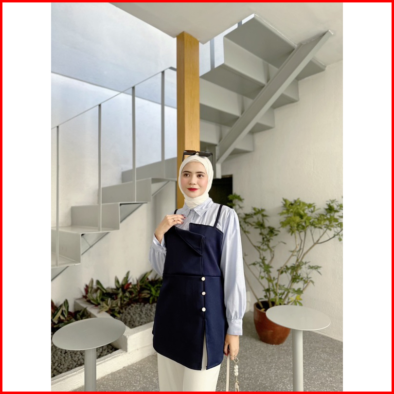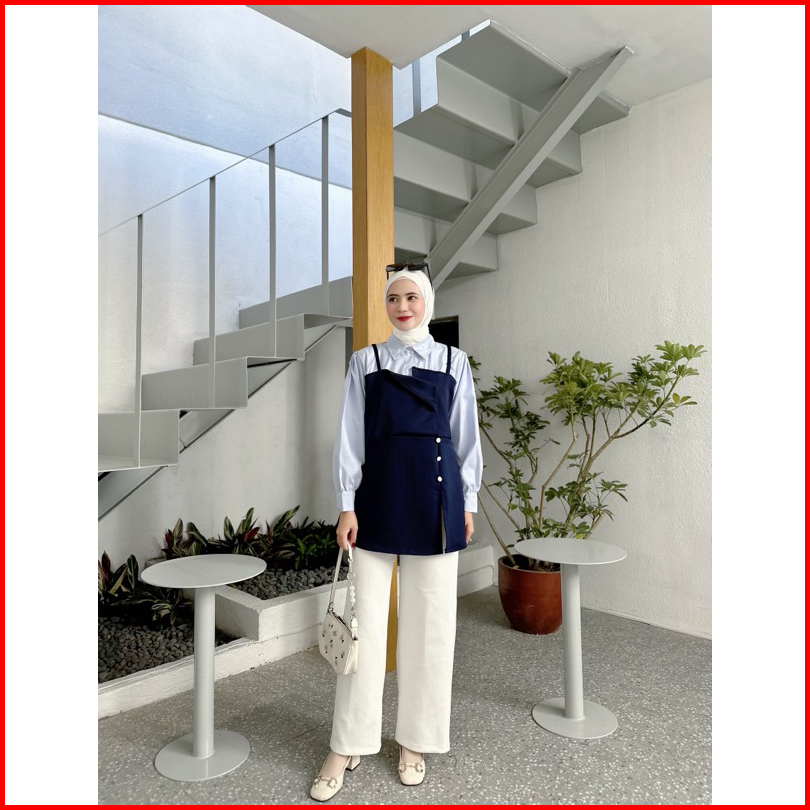 Kemeja Katun Biru Inara Wanita Muslim Kerja Casual Hits Kekinian Scuba Bonnie Navy Cloth