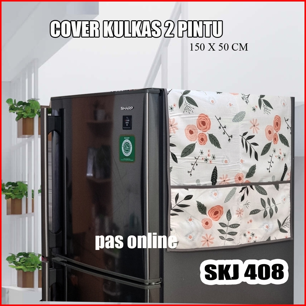 Cover Kulkas 2 Pintu Katun Motif Cantik 150x50 Cm