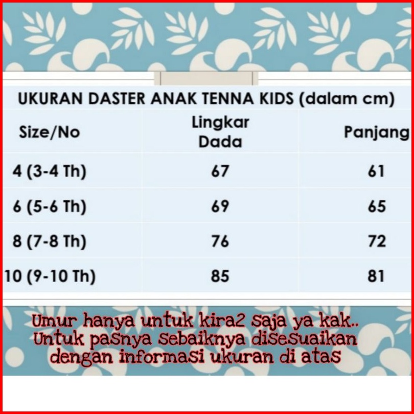 Daster Anak Perempuan Bahan Rayon Umur 3-10 Thn Tenna Kids