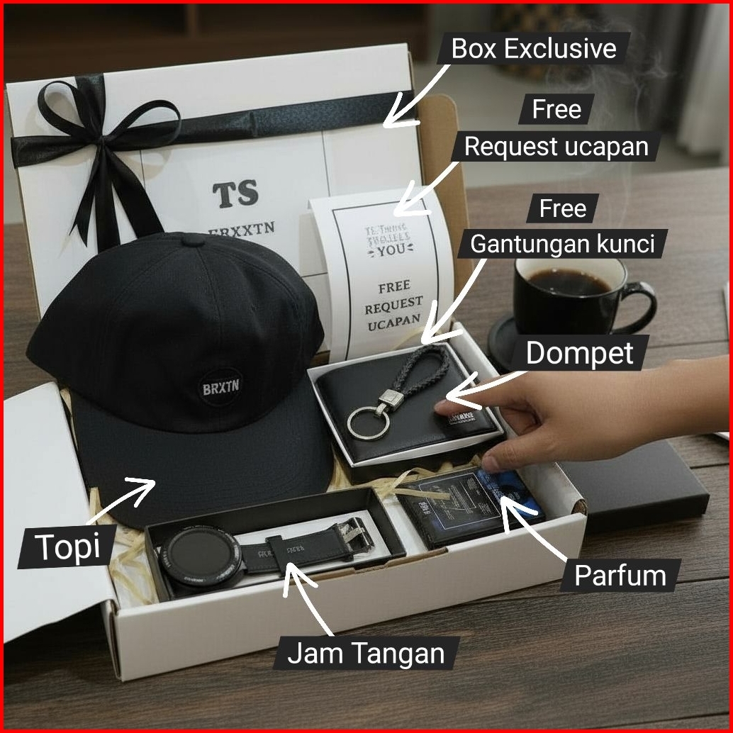 Hampers Gift Box Cowok Pria Exclusive Untuk Hadiah Kado Isi Jam Tangan Dompet Parfum Dll