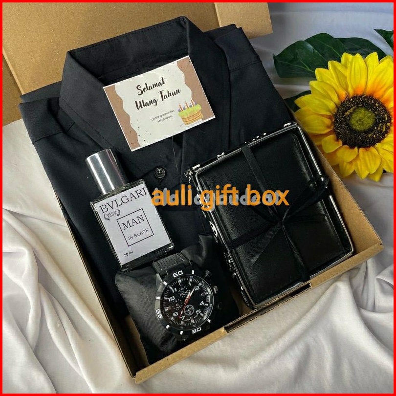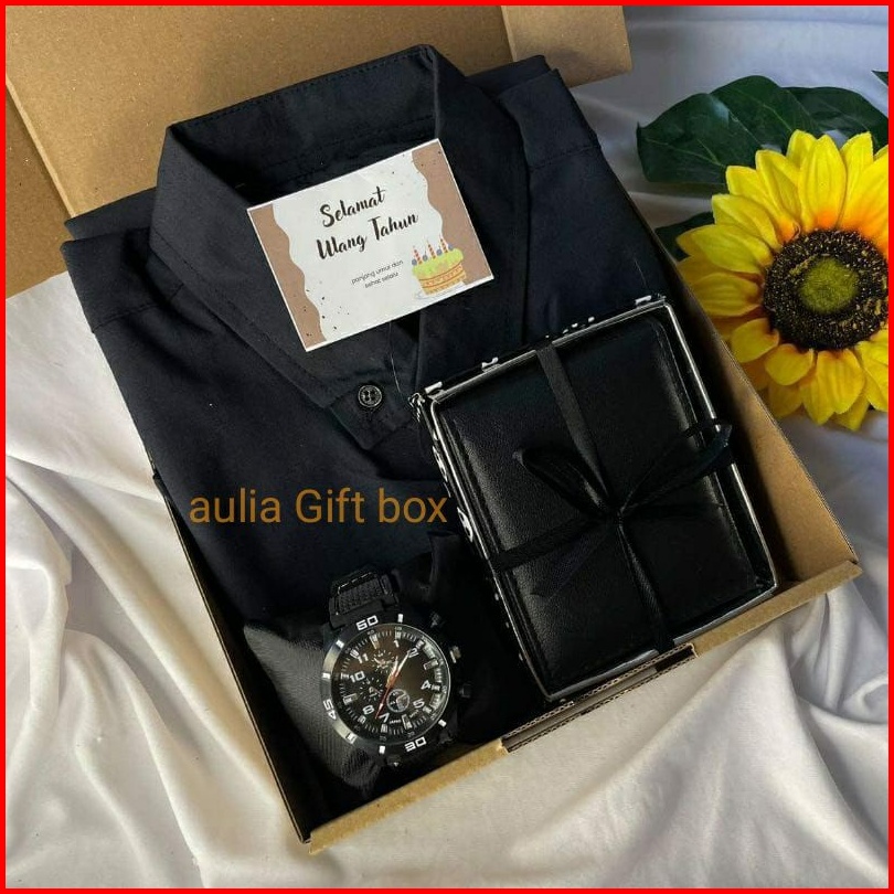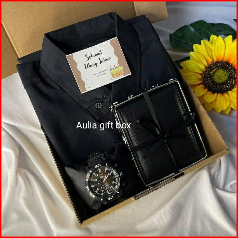 Set Hadiah Hampers Cowo Kemeja Lengan Panjang Black