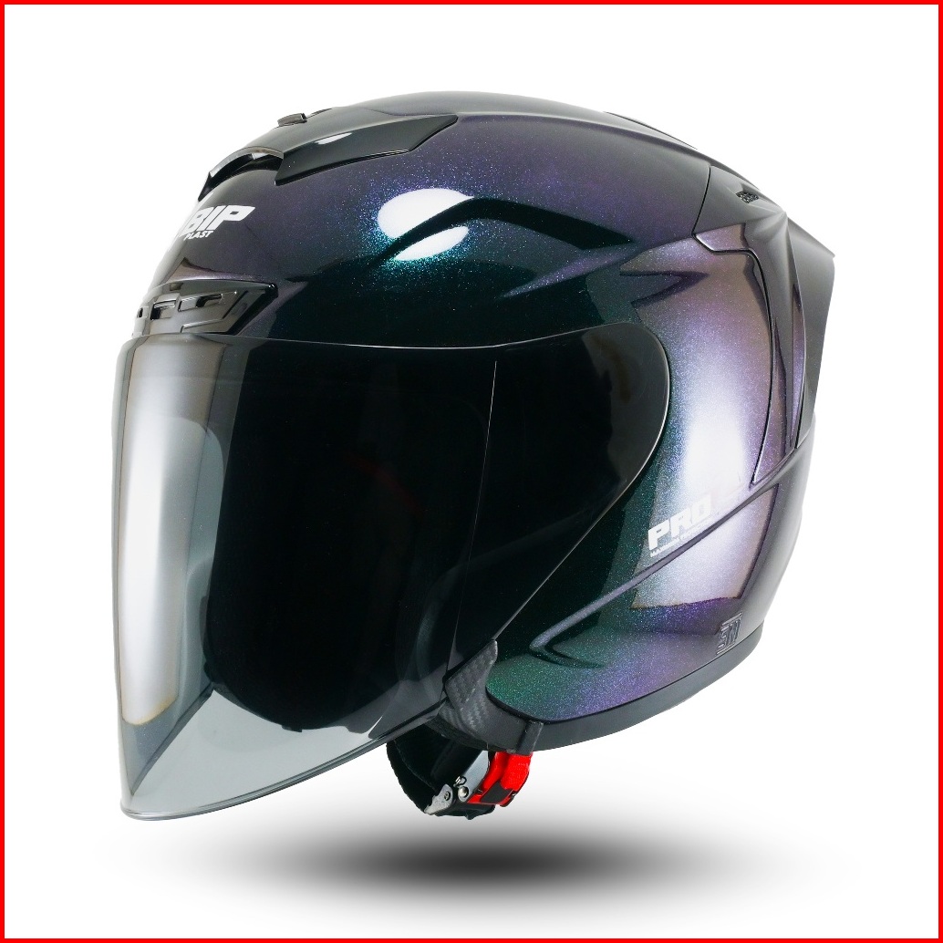 Helm Half Face Pro Z Solid Sni Kaca Silver Clear Smoke