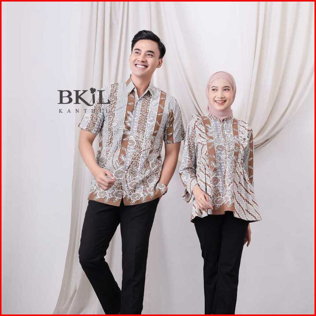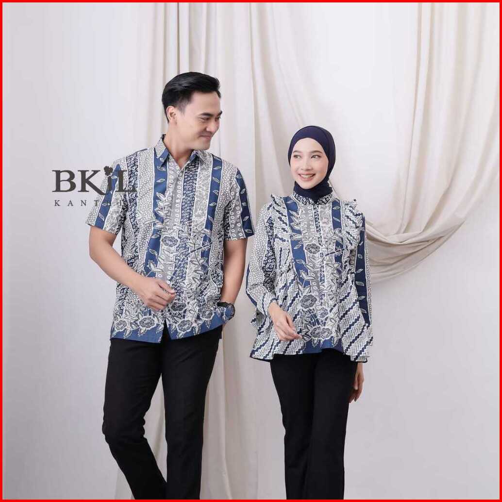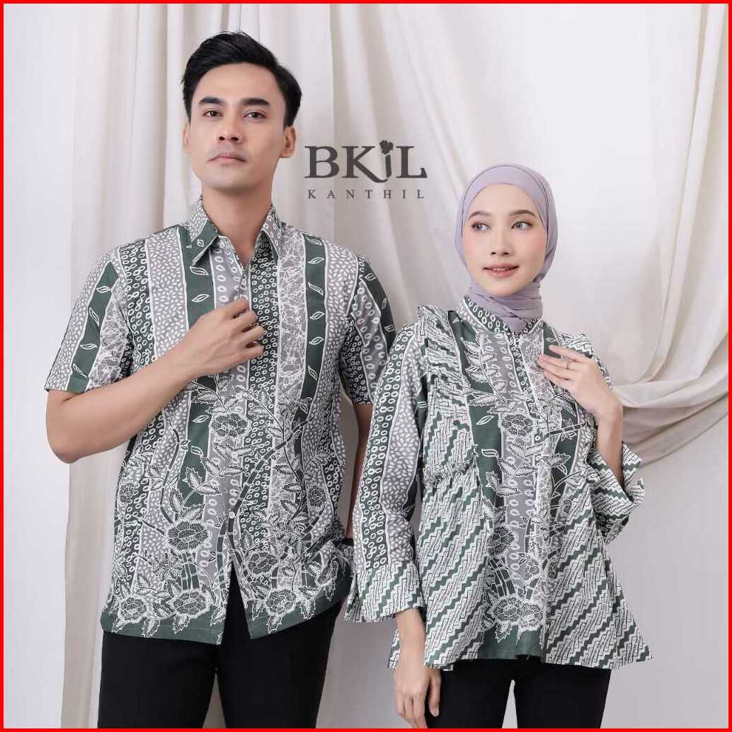 Kanthil Baju Batik Couple Pria Wanita Atasan Batik Wanita Modern Bunga Liris