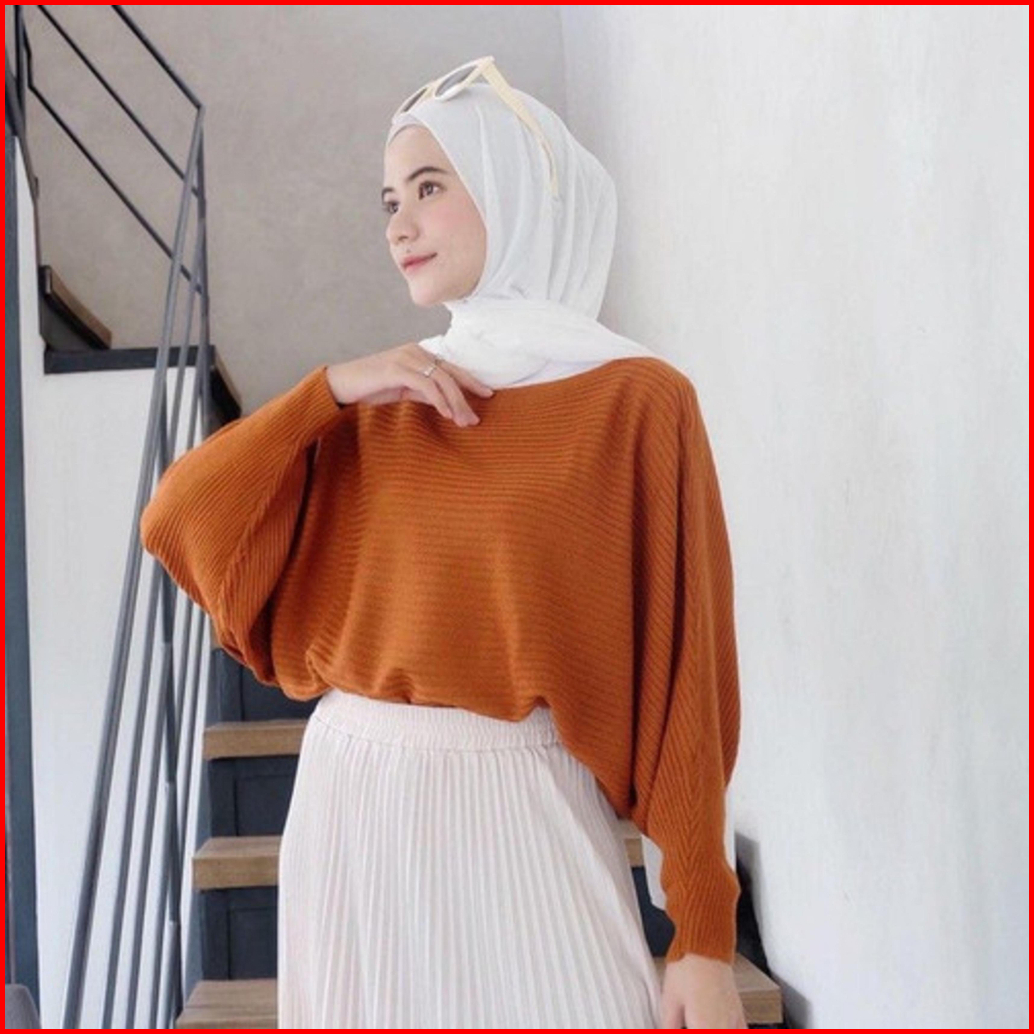 Artwo Atasan Outer Sweater Rajut Wanita Batwing Standar Bahan Adem Tidak Gerah