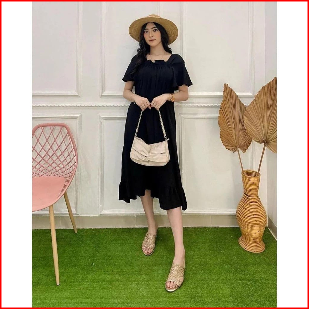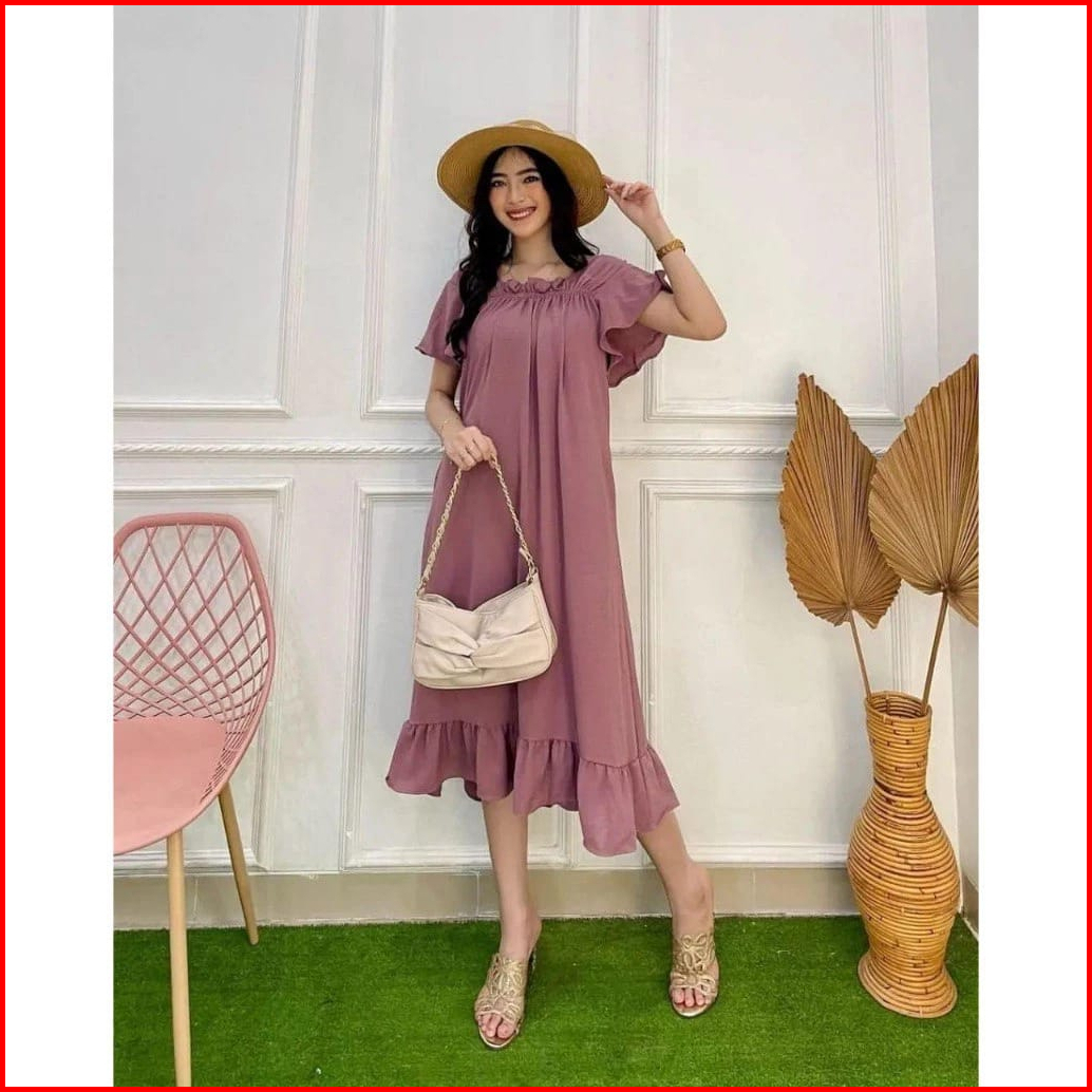 Rx Fashion - Daster Dress Fuji Crincle L - Xxl Daster Midi Zara Crincle Dress Airflow Cringkle Premium -pn