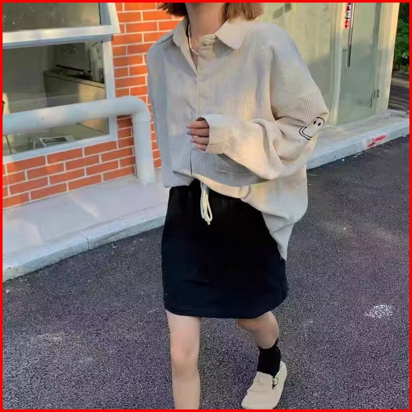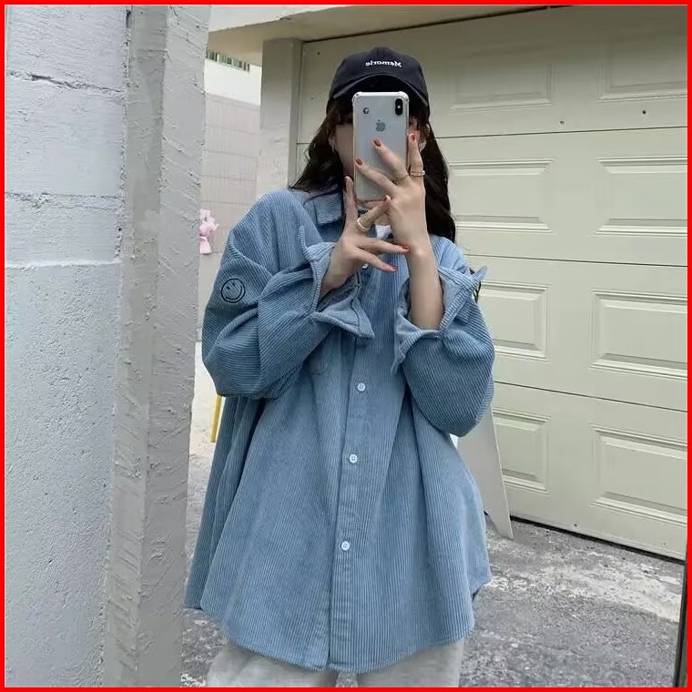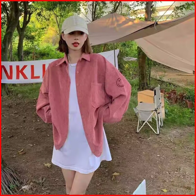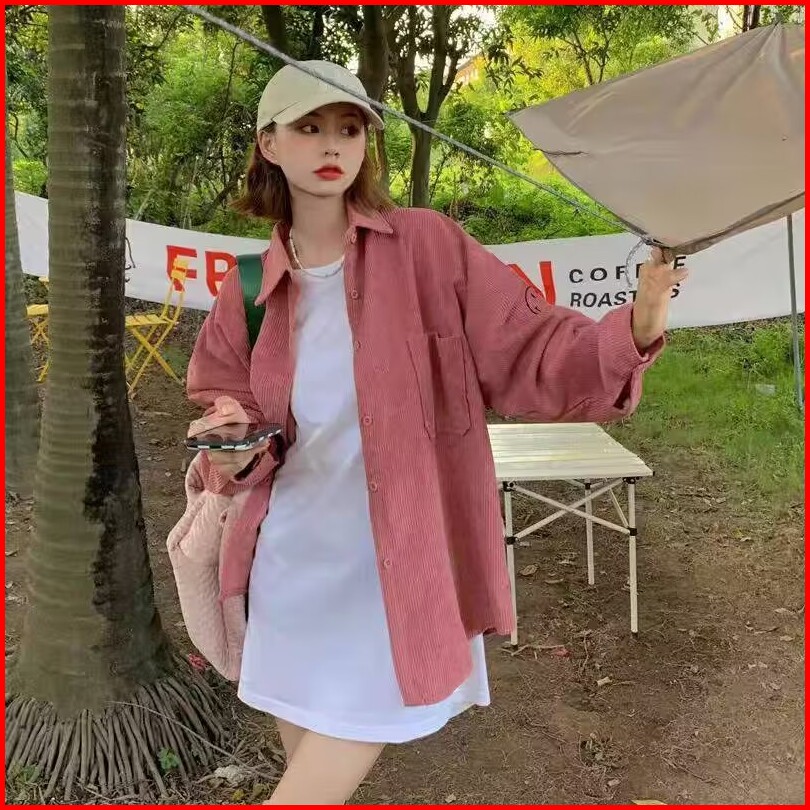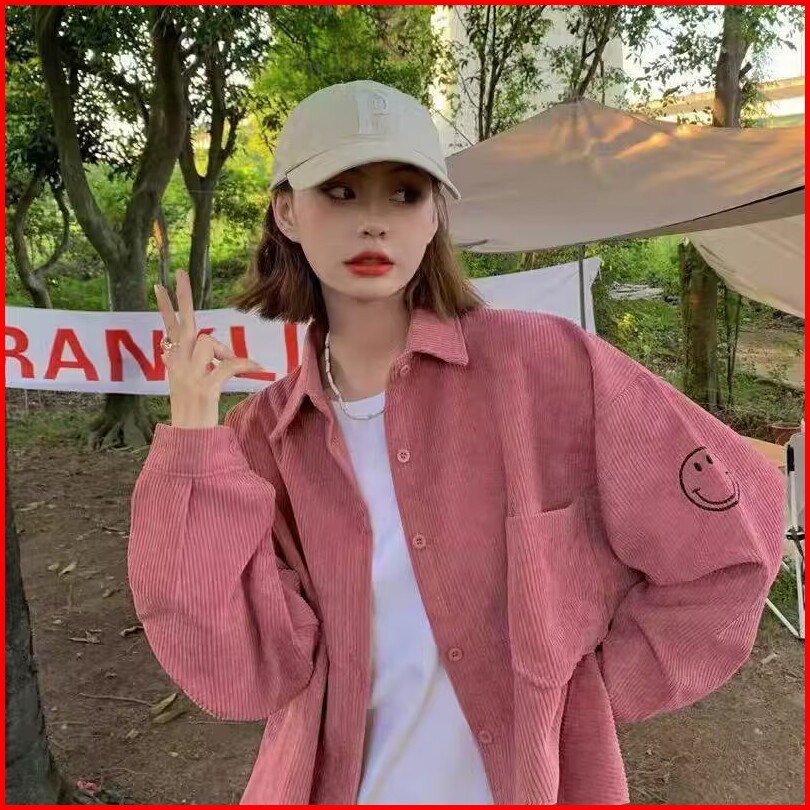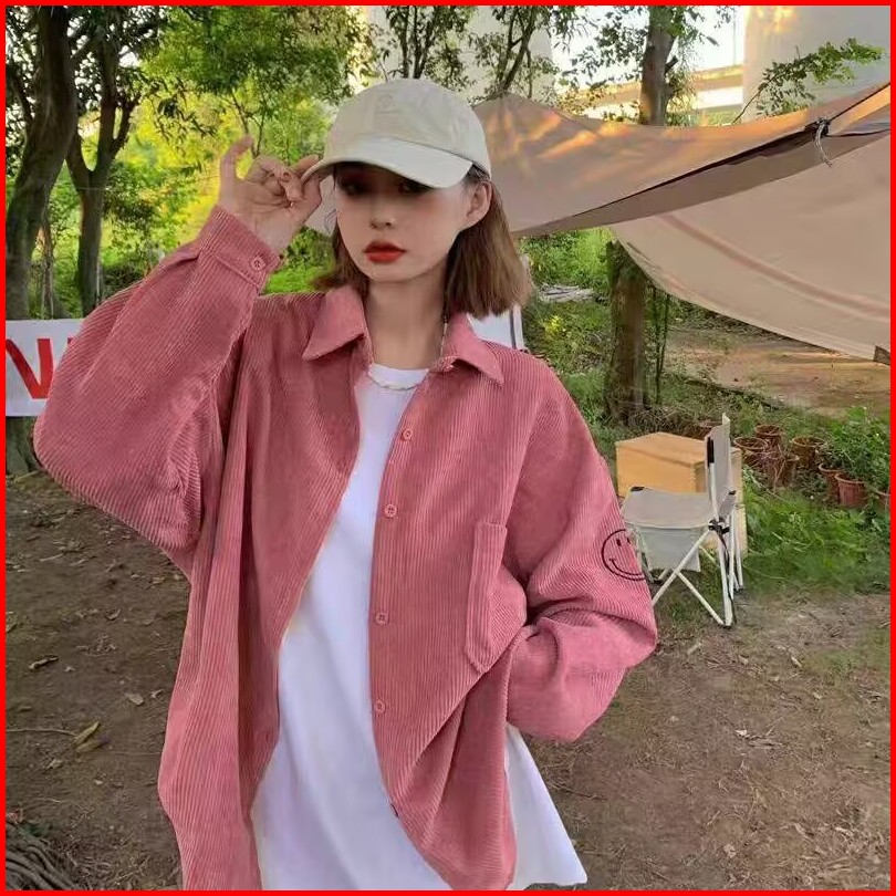 Kemeja Kemeja Wanita Kemeja Korduroi Gaya Korea Jaket Kemeja Lengan Panjang Longgar