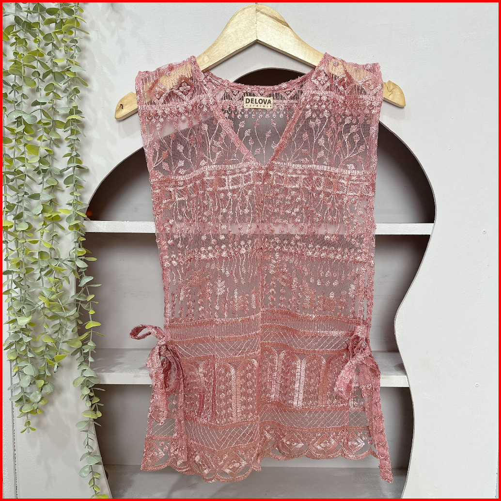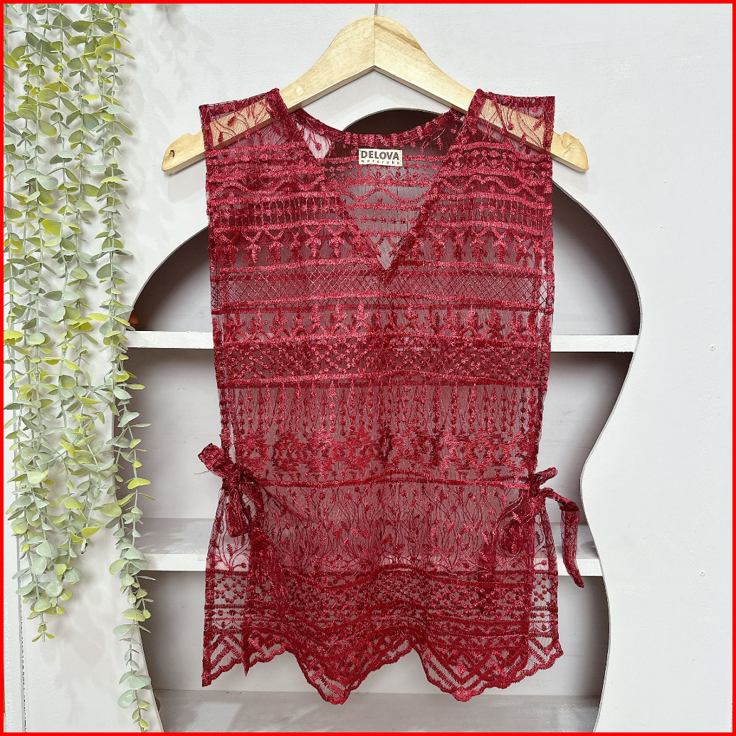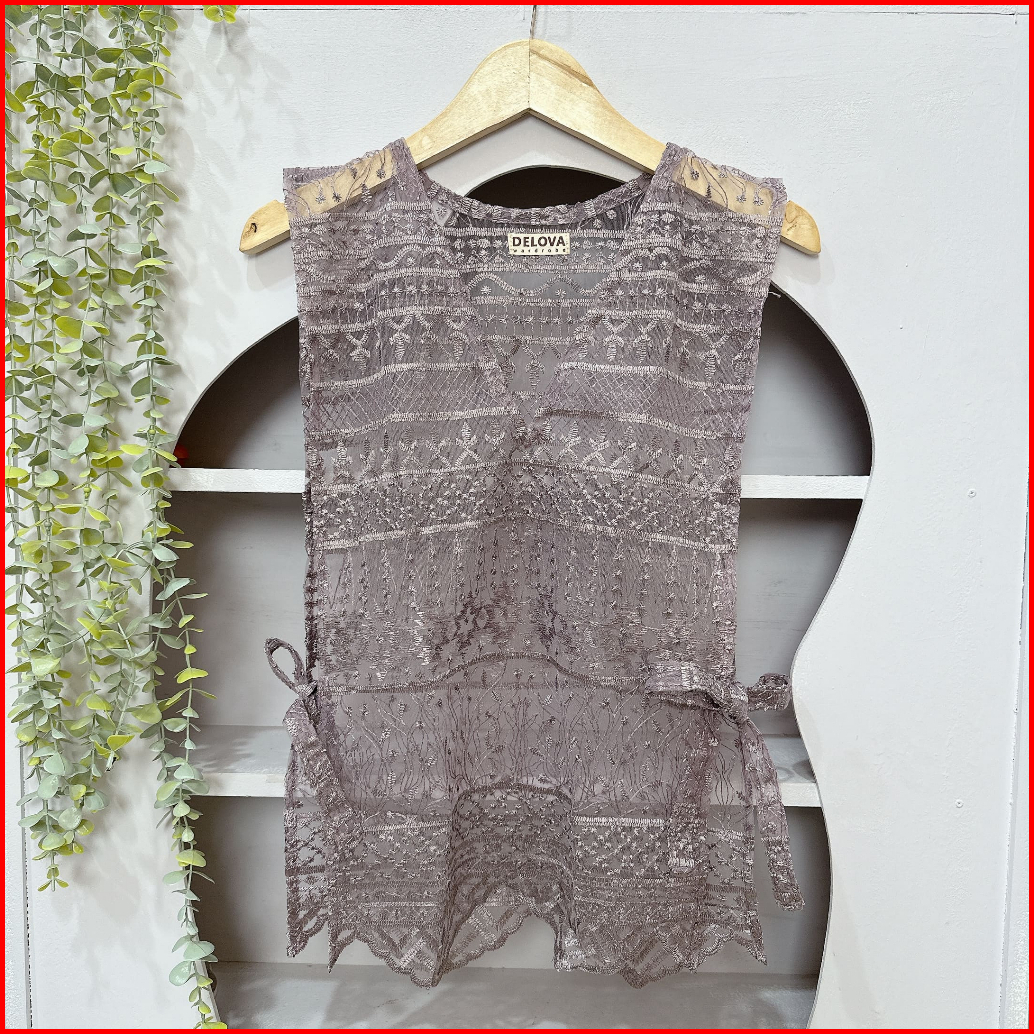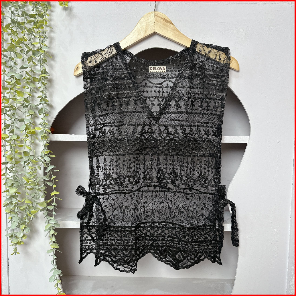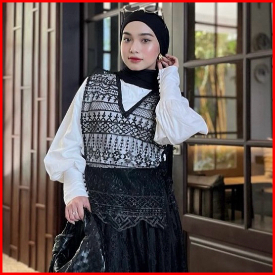 Delova Wardrobe - Vest Brukat Premium Modern Casual Prada Vintage Bordir Stylish Outfit Atasan Wanita Outer Rompi Tali R