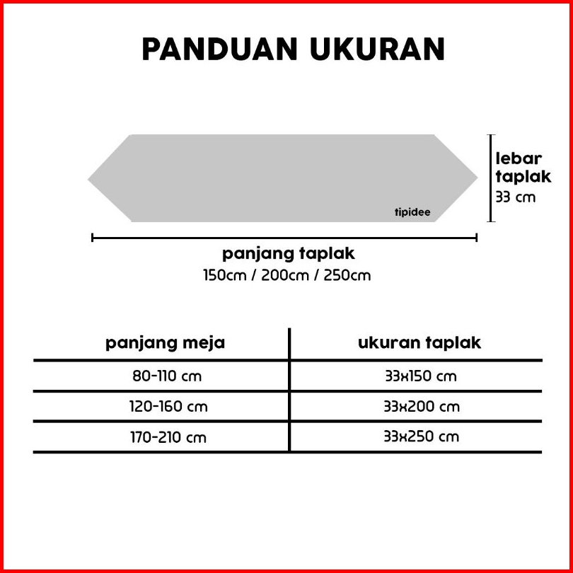 Tipidee - Table Runner Taplak Meja Tamu Taplak Meja Makan Minimalis 33x150cm 33x200cm
