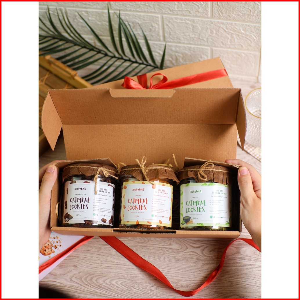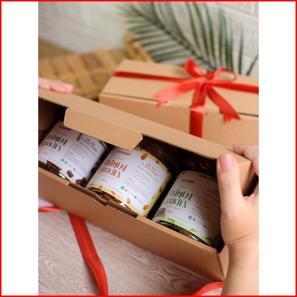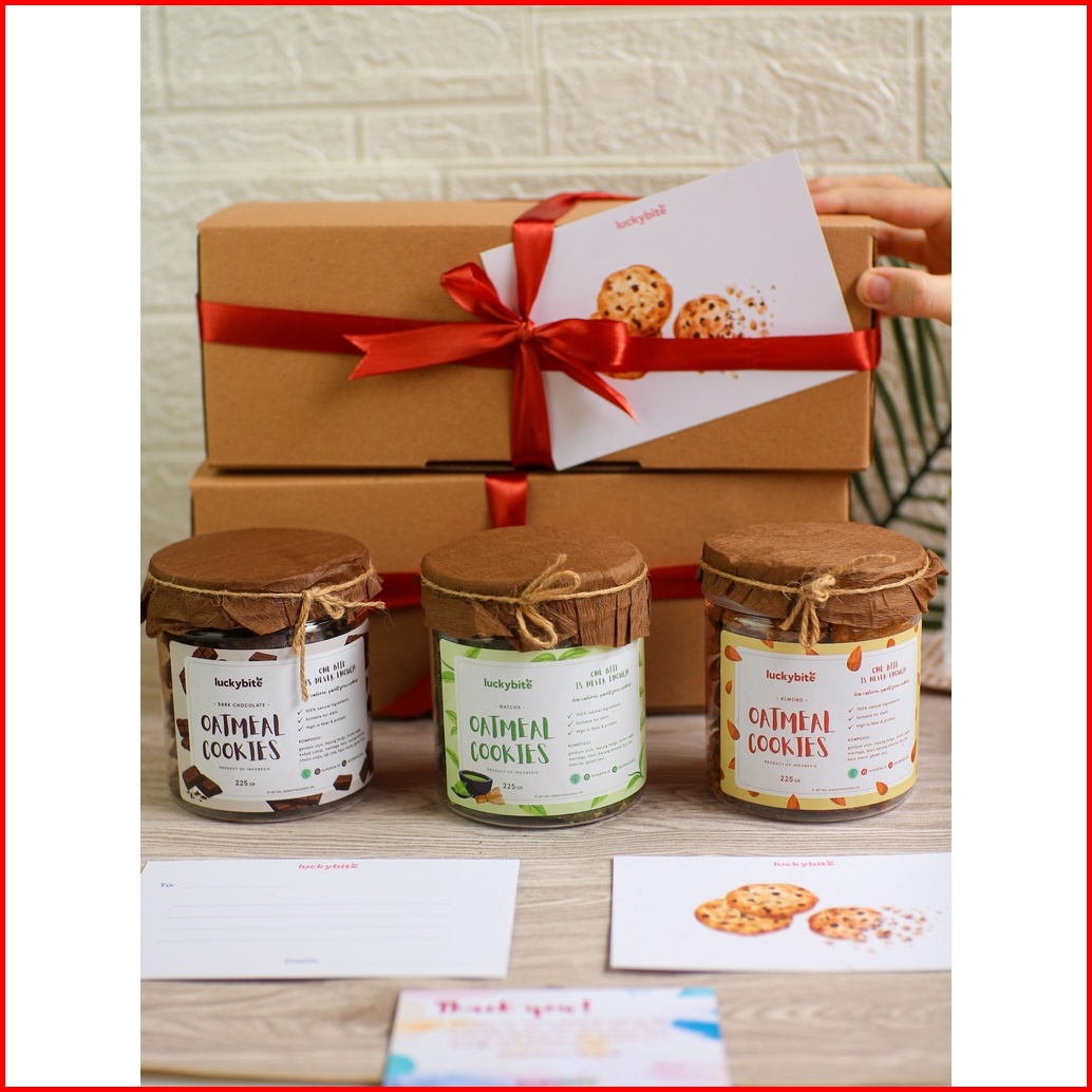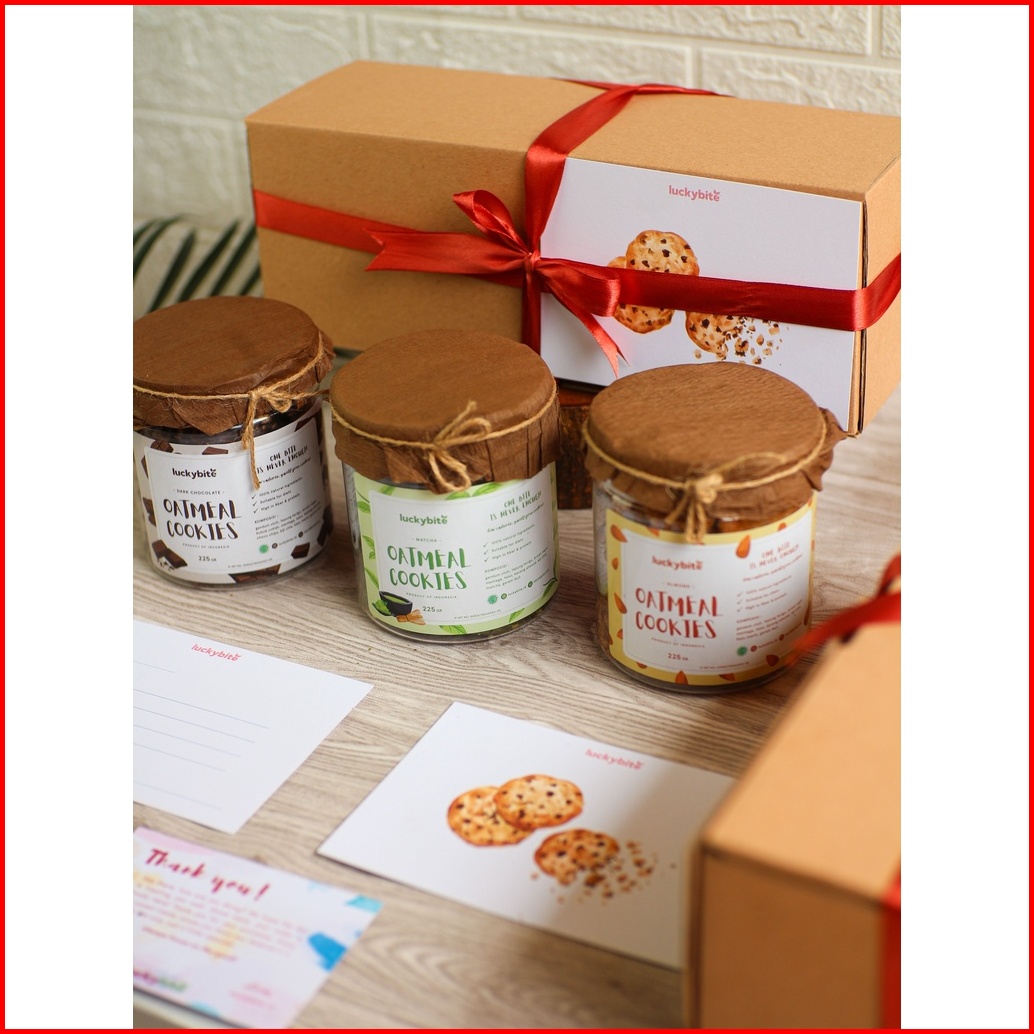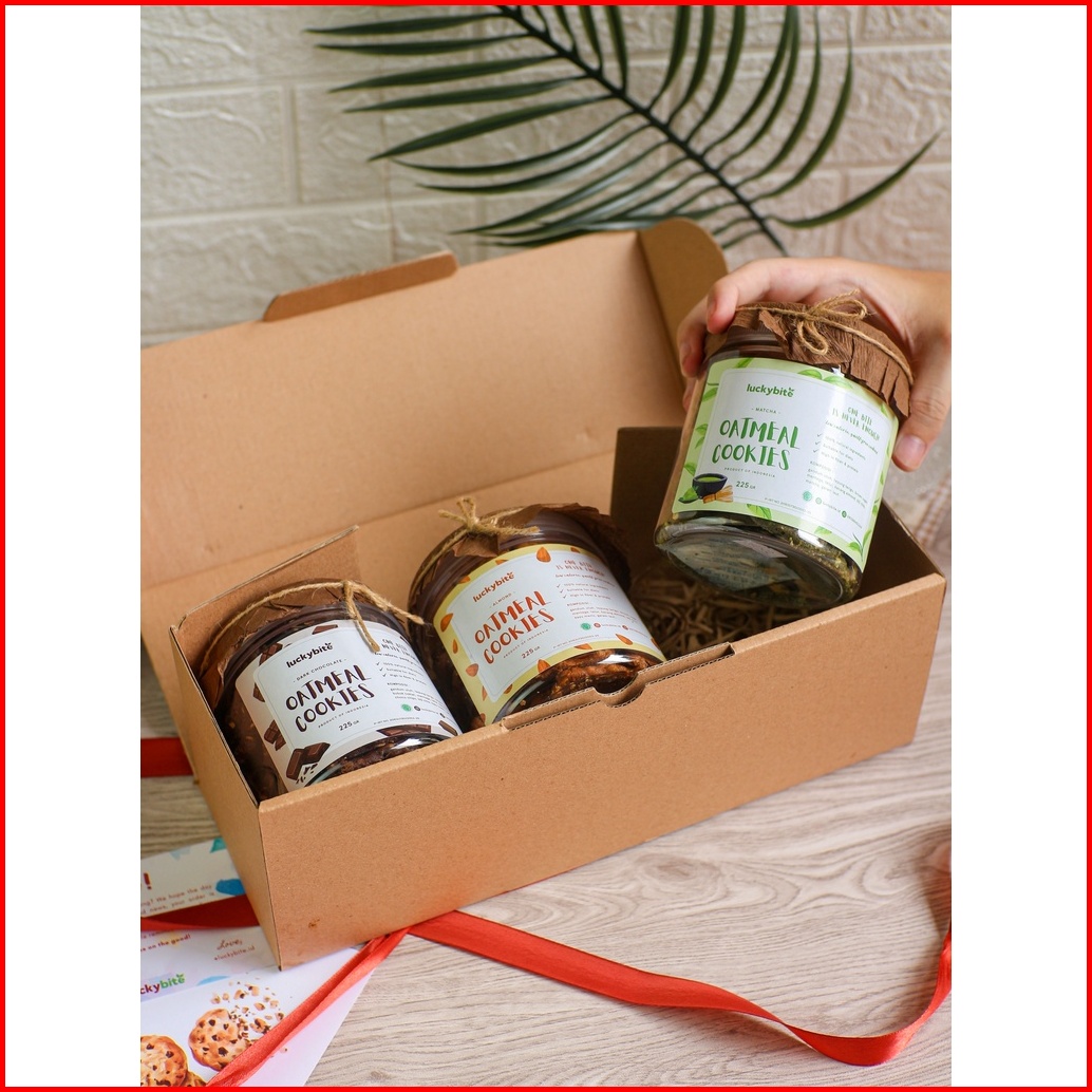 Special Hampers Gift Box Kado - Oatmeal Cookies 3 Jar Free Greeting Card Pita Bubble Wrap - Luckybite
