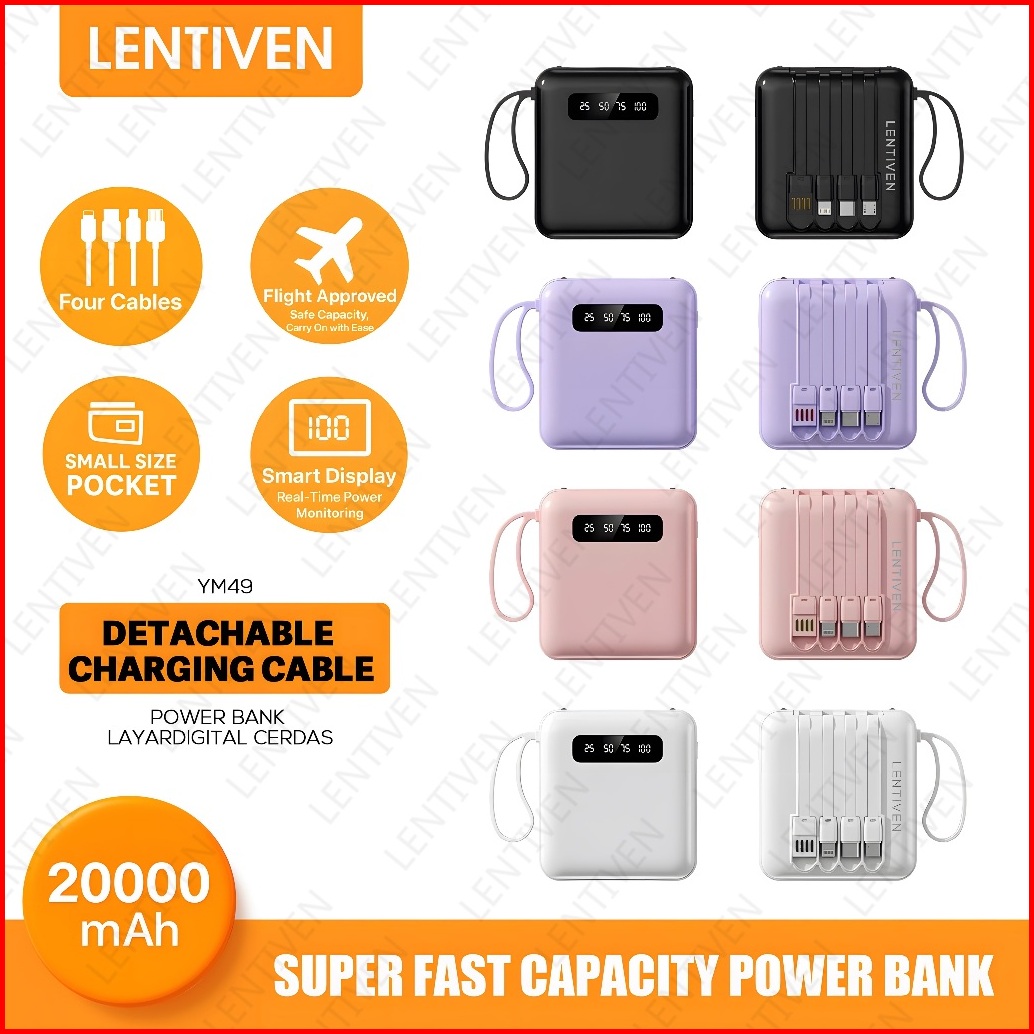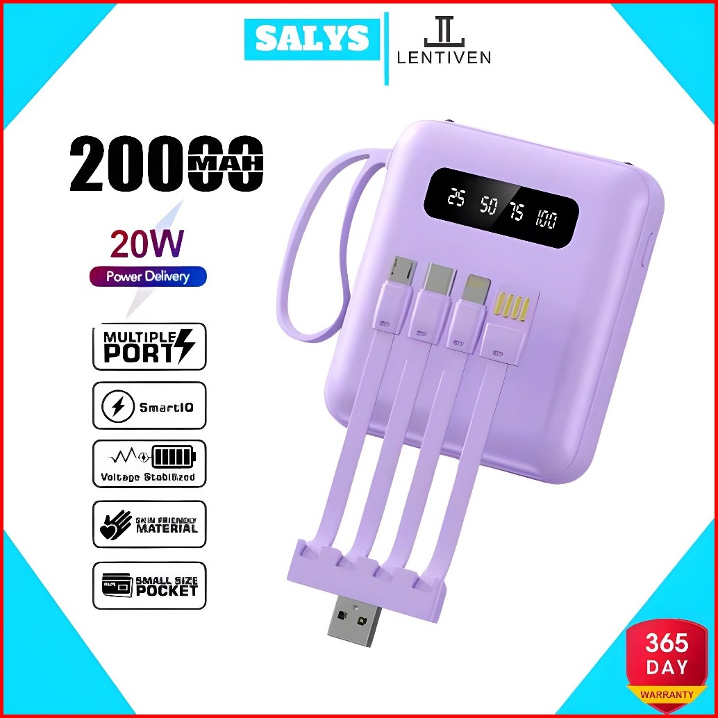 Salys Lentiven Powerbank 20000 Mah Mini Size With 4 Kabel Fast Charging Led Senter Display Y49