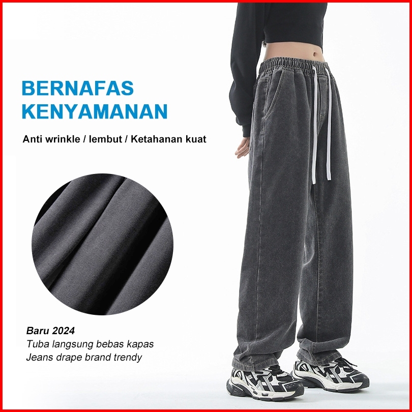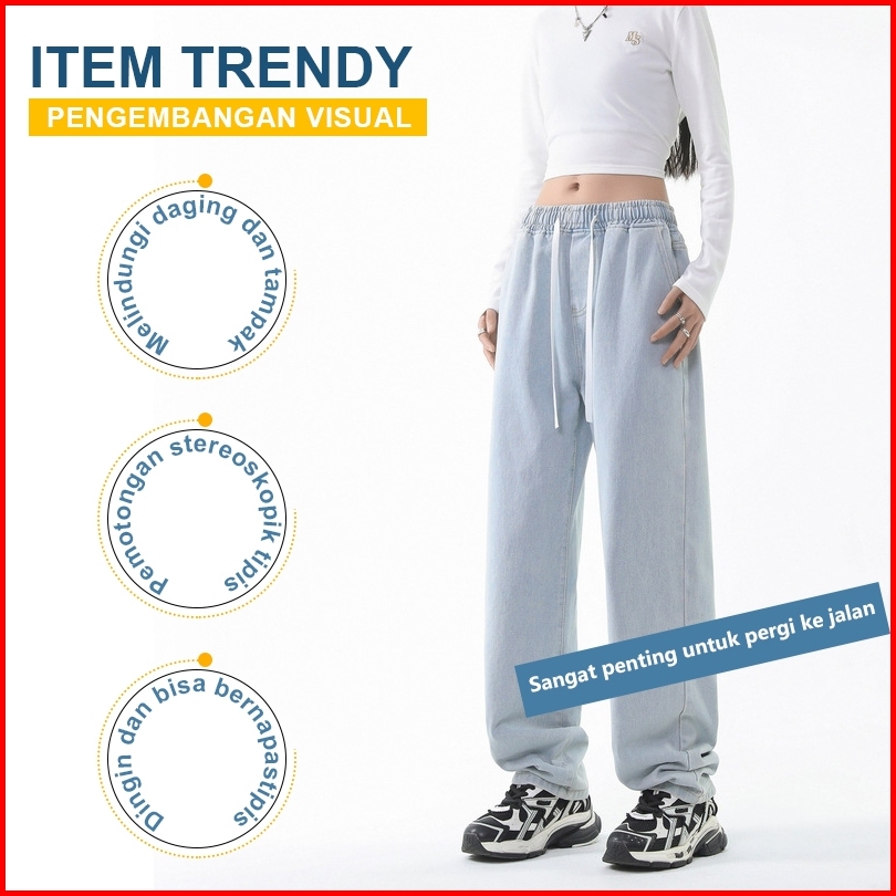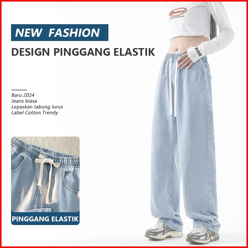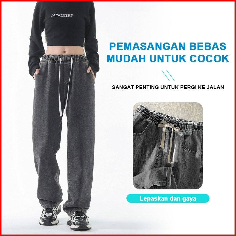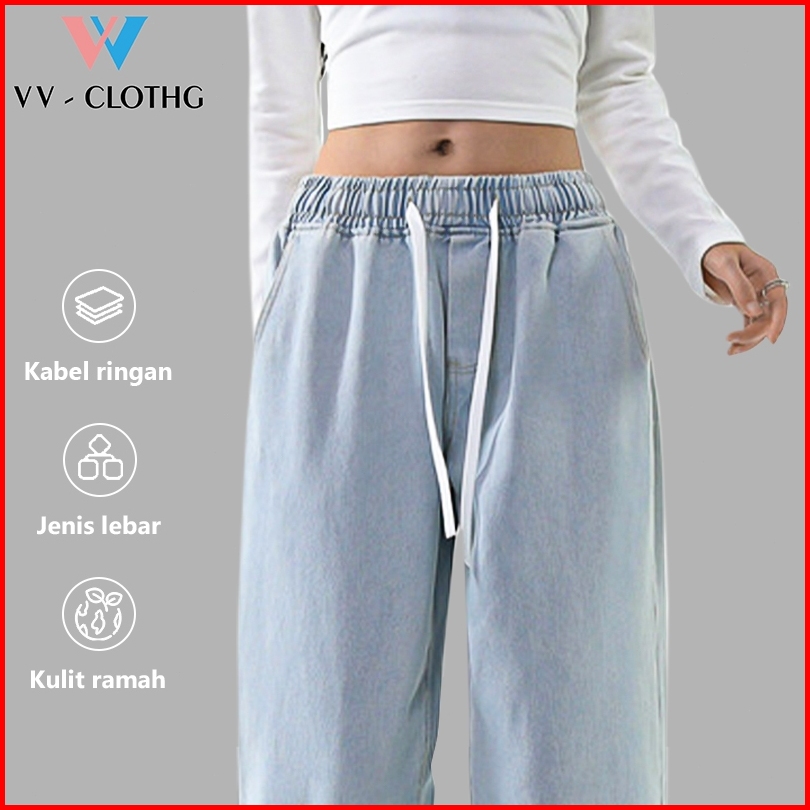 Vv - Clothg - Celana Jeans Wanita Loose Jeans Jeans Pinggang Elastis Celana Jeans Murah