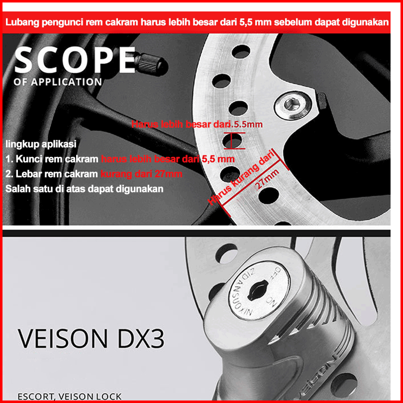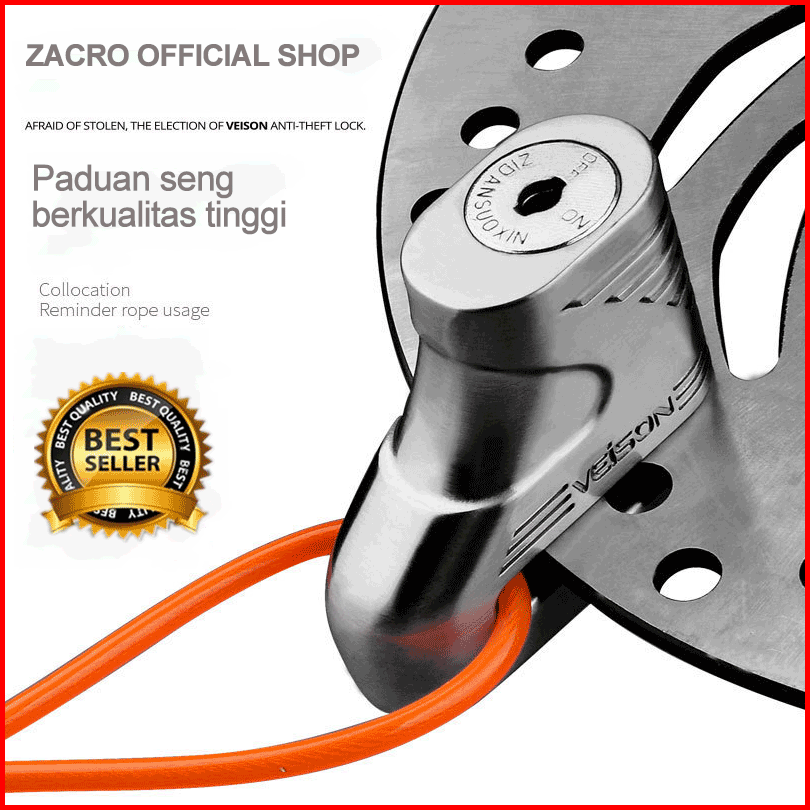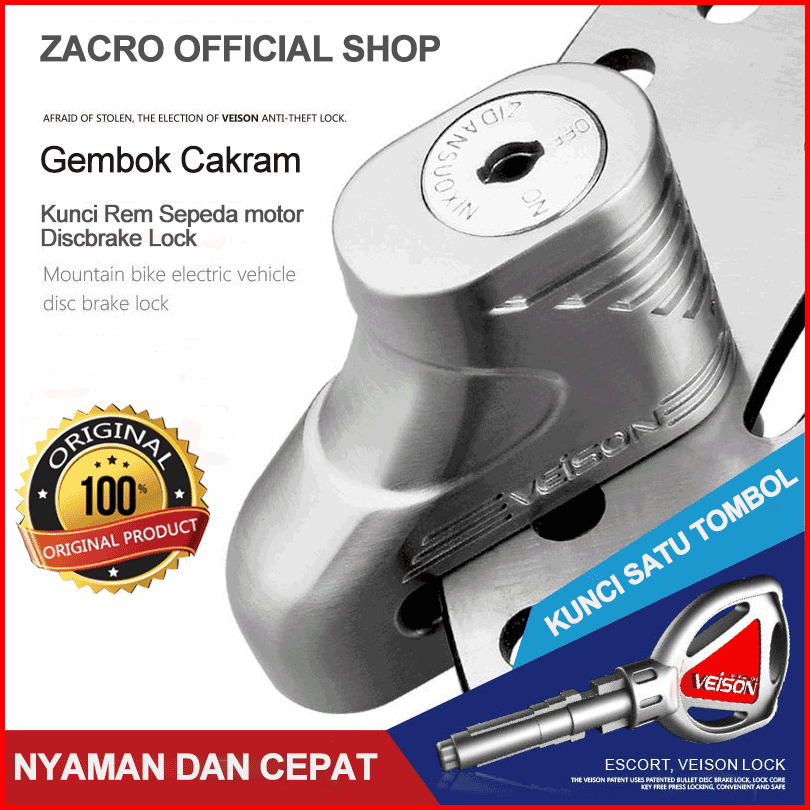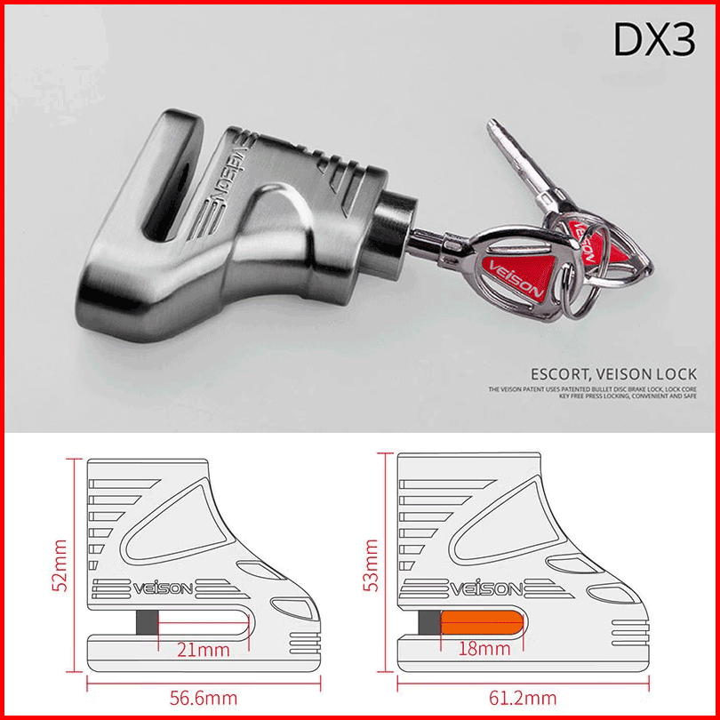 Zacro Dx3 Gembok Cakram Kunci Rem Sepeda Motor Discbrake Lock Paduan Seng Berkualitas Tinggi