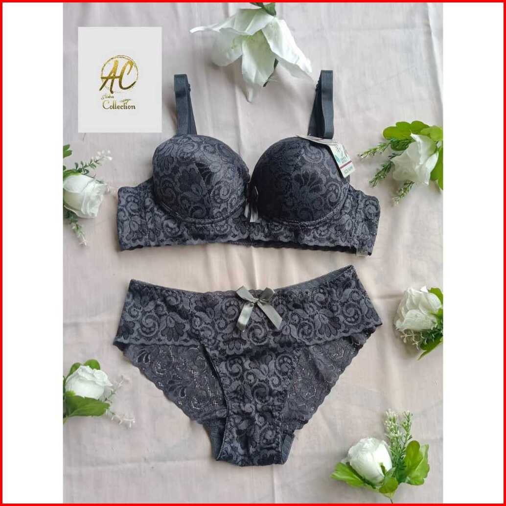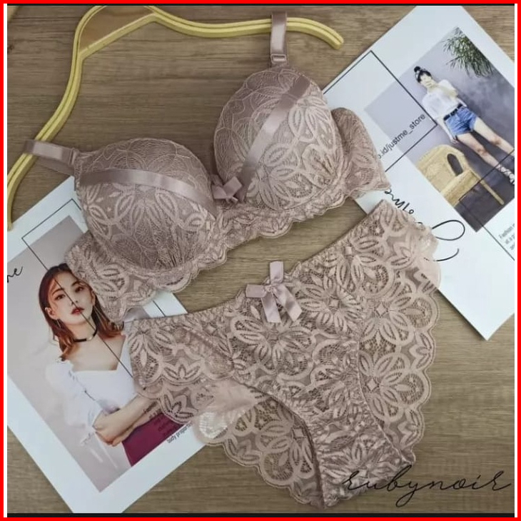Bra Set Bh Cd Beha Celana Dalam Wanita Setelan Renda Import Quality Rc03 36-42 Cup B Bra Sexy Hot Busa Motif Bunga Impor