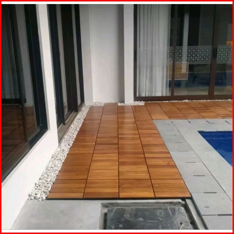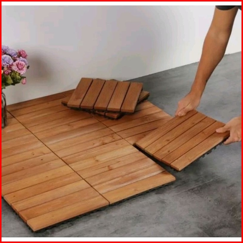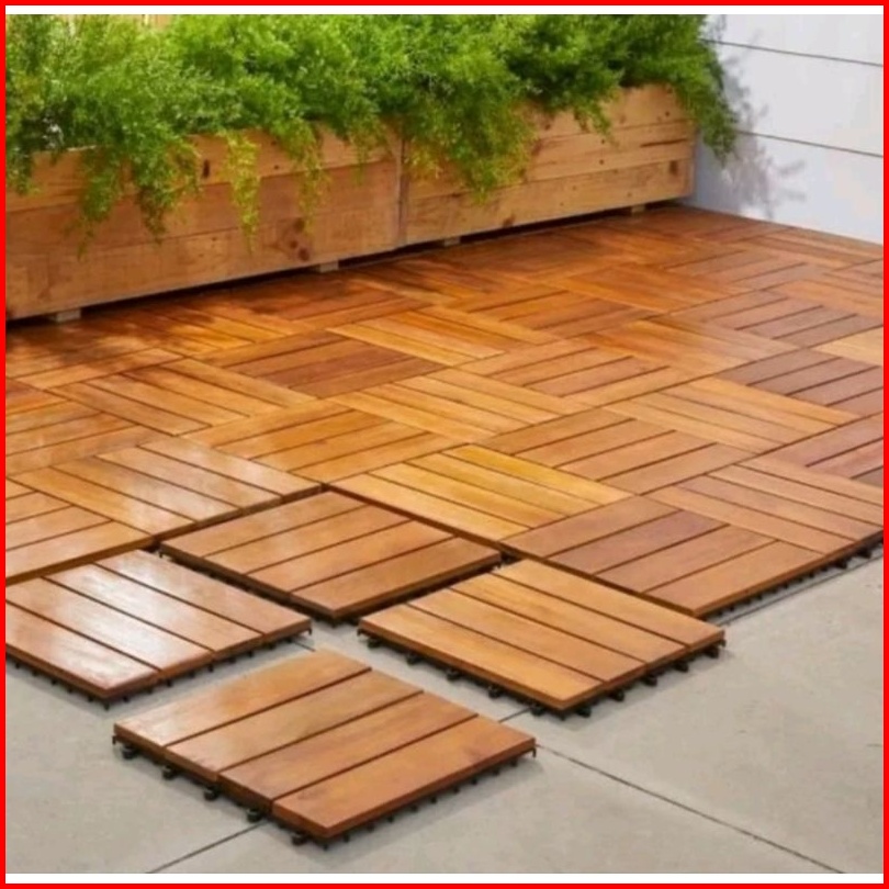 Decking Tile Lantai Kayu Jati Motif Lurus Ukuran 30x30 Cm - Decking Kayu Outdoor - Lantai Kayu Parkit - Decking Lantai K