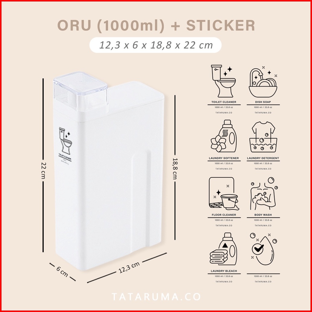 Tataruma Oru - Botol Refill Estetik Minimalis Tempat Detergent Softener Laundry Sabun Cuci Piring Toilet Cleaner Cairan