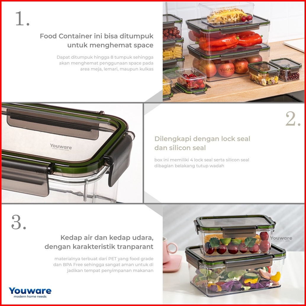 Youware - Emerick Food Container Wadah Makanan Aesthetic Tempat Penyimpanan Snack Buah Sayuran Kedap Udara