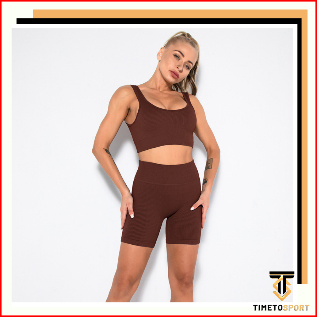 Timetosport Setelan Baju Celana Olahraga Yoga Gym Fitness Aerobik Zumba Wanita Mid Waist Import 1137