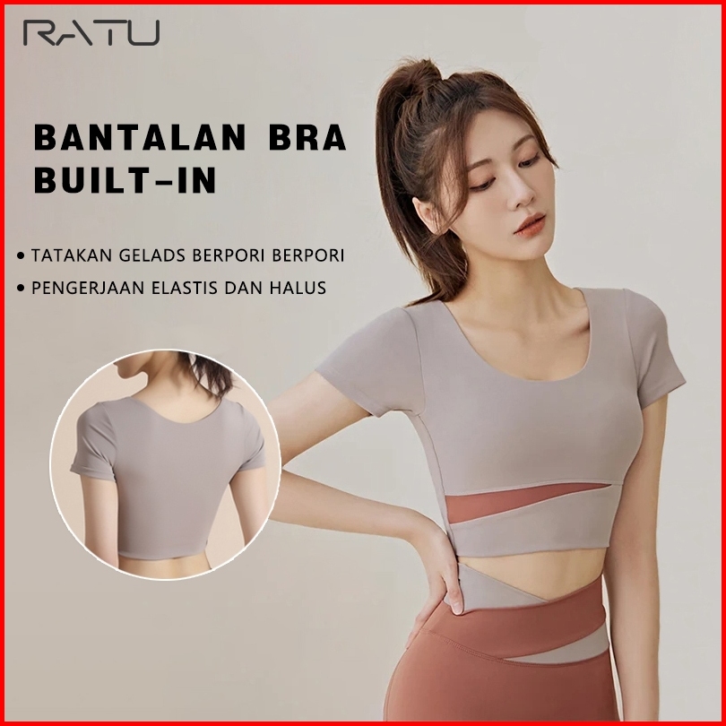 Ratu-yoga Set Setelan Baju Olahraga Wanita Pakaian Yoga Rompi Kebugaran Lari Wanita Setelan Celana Olahraga Lengan Pende